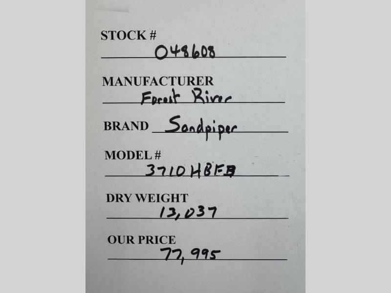 Forest River Sandpiper fifth wheel 3710HBFB highlights: