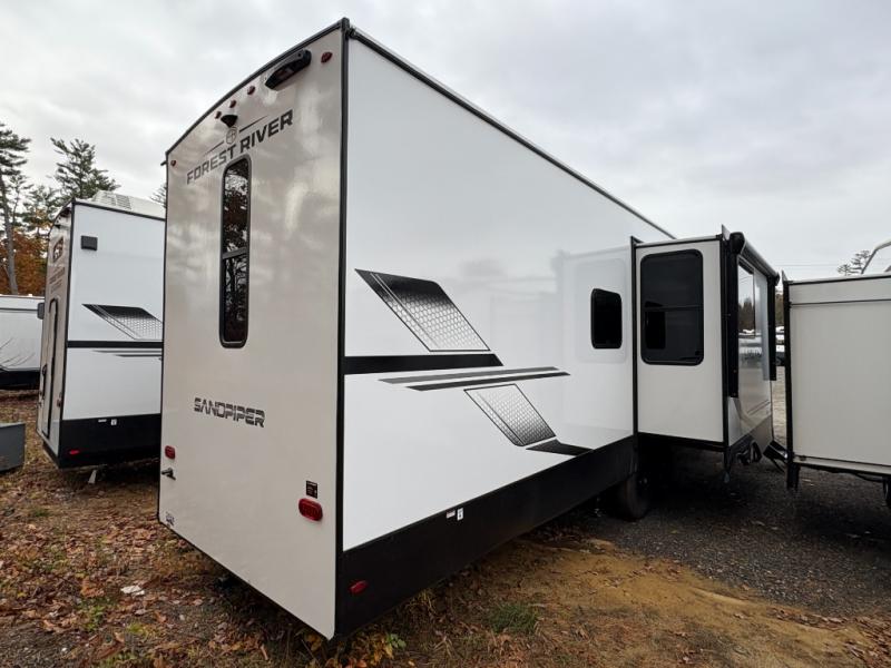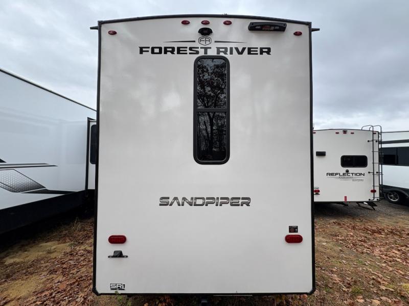 You will find the perfect balance of size, space, features, and luxury with any one of these Forest River Sandpiper fifth wheels! They have a cambered powder coated frame with rust prohibitor, and a fully enclosed underbelly for added protection against the elements. Also, the power front jacks with spring-loaded pins enhance the convenience, speed, and safety. The large, tinted windows come with a 80/20 UV prohibitors. Some hassle-free amenities include a 60k BTU on-demand water heater, porcelain foot flush toilet(s), tire pressure monitor system, and an electric leveling system! Inside, you'll enjoy stainless steel kitchen package, solid surface kitchen countertops, Beachside Sundance Congoleum linoleum, recessed residential lighting, and many more comforts!