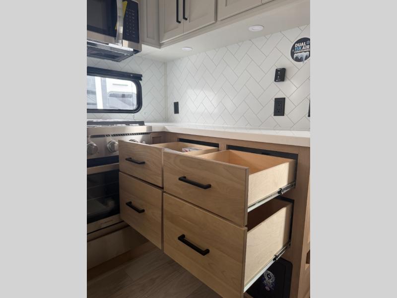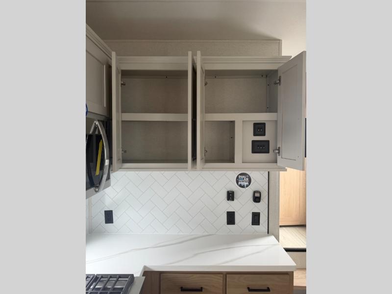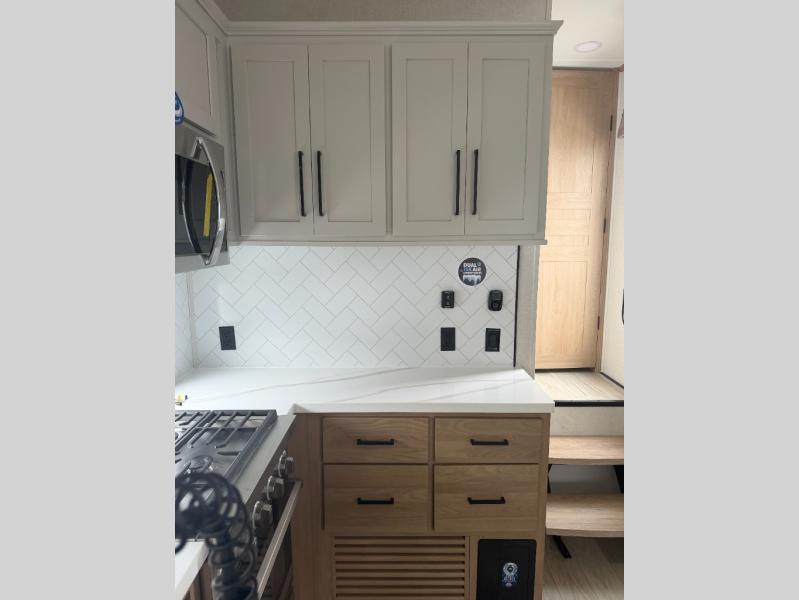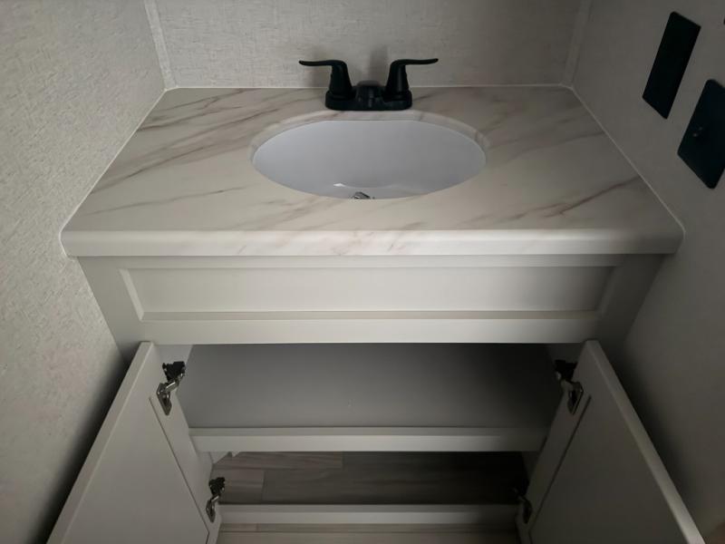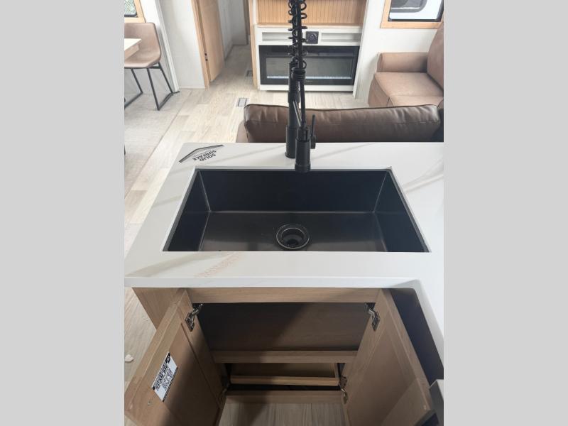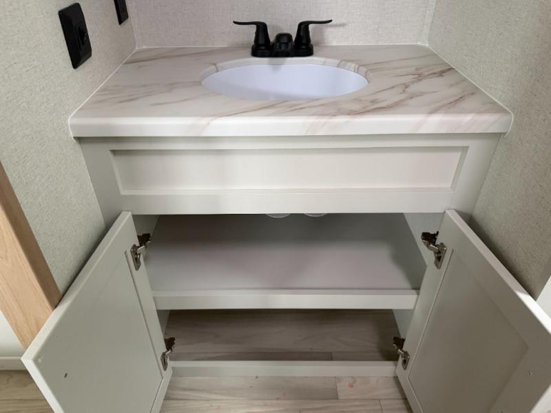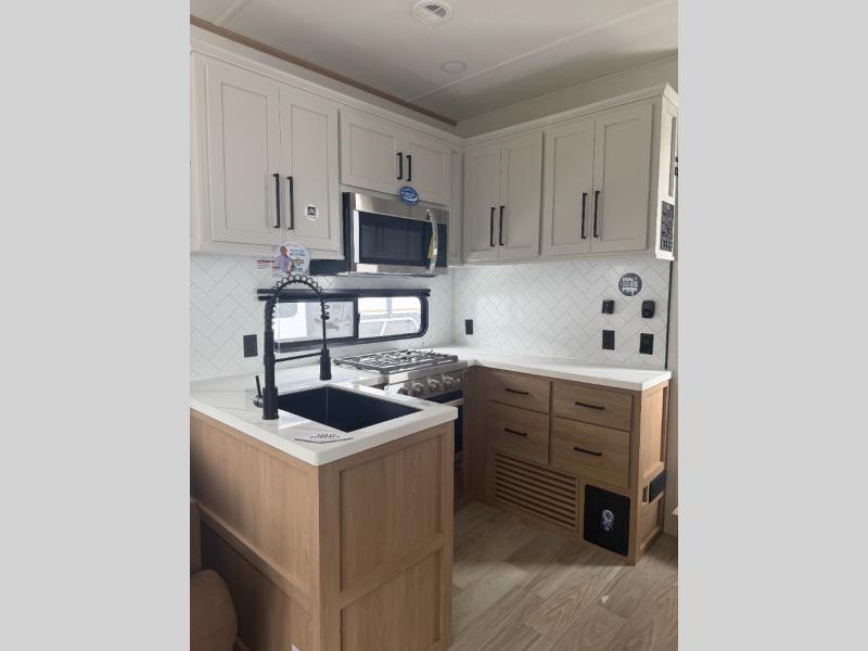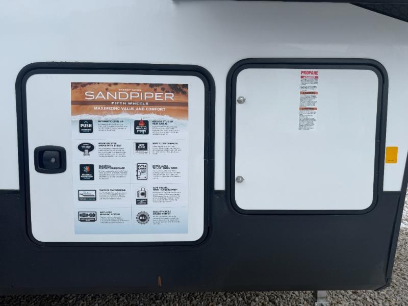 You will find the perfect balance of size, space, features, and luxury with any one of these Forest River Sandpiper fifth wheels! They have a cambered powder coated frame with rust prohibitor, and a fully enclosed underbelly for added protection against the elements. Also, the power front jacks with spring-loaded pins enhance the convenience, speed, and safety. The large, tinted windows come with a 80/20 UV prohibitors. Some hassle-free amenities include a 60k BTU on-demand water heater, porcelain foot flush toilet(s), tire pressure monitor system, and an electric leveling system! Inside, you'll enjoy stainless steel kitchen package, solid surface kitchen countertops, Beachside Sundance Congoleum linoleum, recessed residential lighting, and many more comforts!