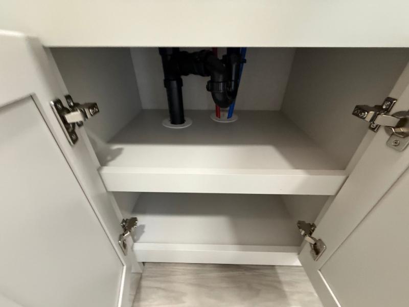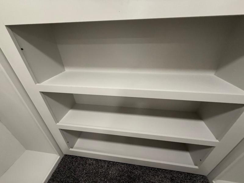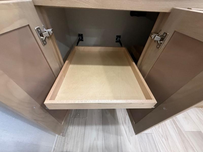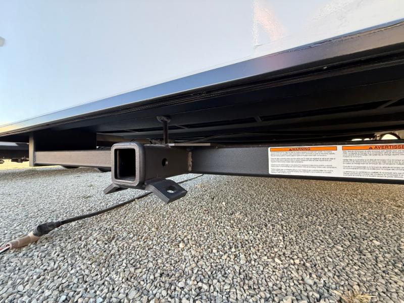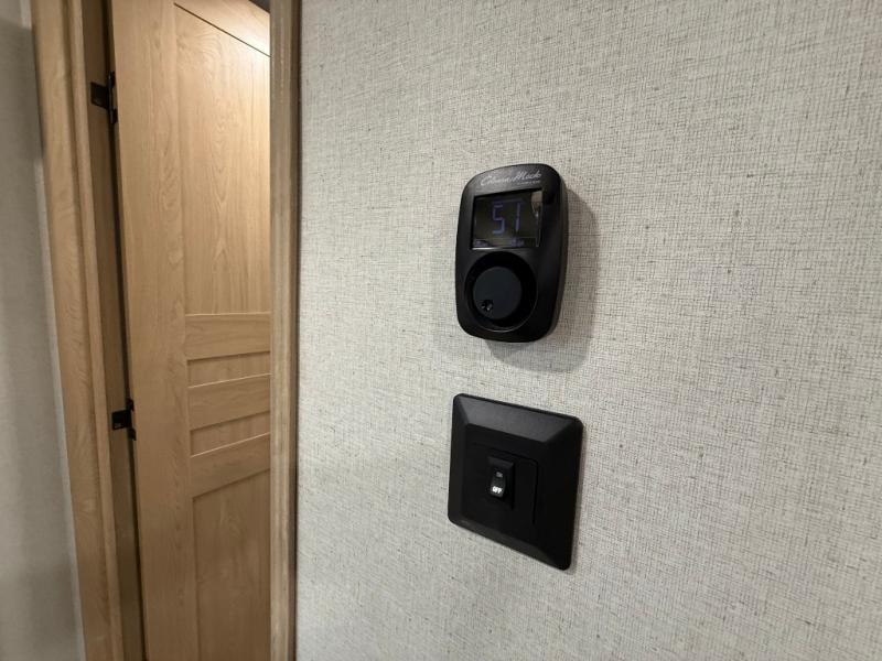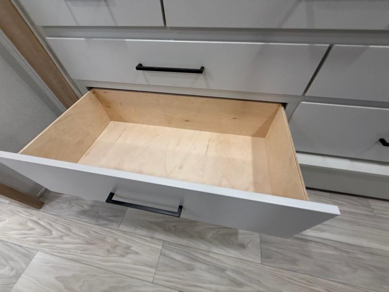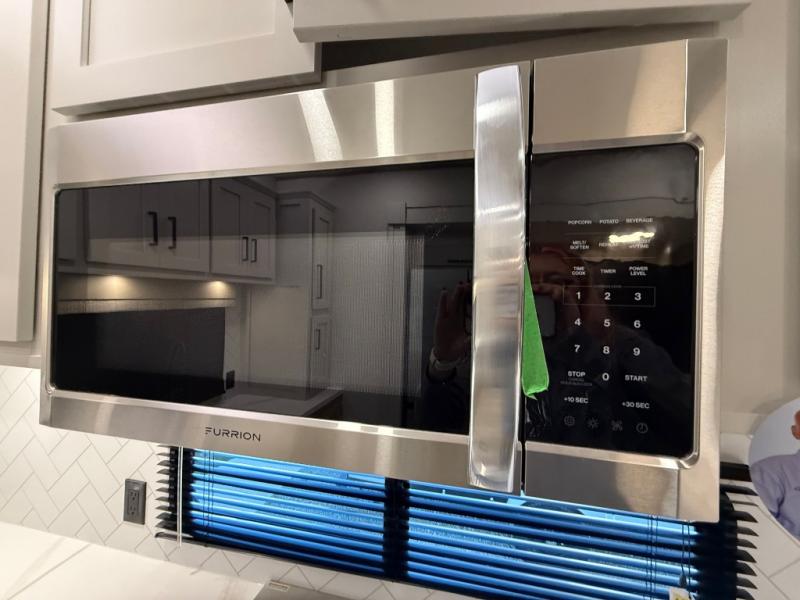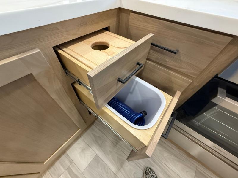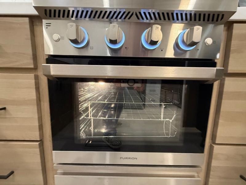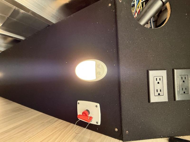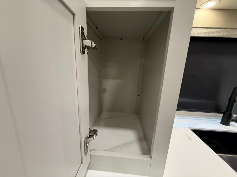 This fifth wheel is packed with convenient features to make your travels more comfortable and enjoyable! The master bedroom includes a king bed slide out with USB ports on either side of the bed so you both can charge your phones, and there is a dresser for your folded clothes. You will love the front bathroom with dual bath sinks, a fiberglass one-piece shower, plus a walk-in closet with shelves and rods to hang clothes! There is a unique middle utility room with washer and dryer prep if you want to add these, a Washer and dryer counter and a rod to hang clothes that will make a perfect laundry room, or you can utilize this space for storage! Head to the main living area to relax on the theater seating or hide-a-bed sofa, and if you have guests stay over, they can sleep here. There is also an entertainment center with a 50" flat screen TV, but you might just leave that off if you're working at the desk with a chair that is provided. We've saved the best part for last, the kitchen! Here, you'll find ample counter space to prep home-cooked meals, a three-burner range with a 24" oven, plus a large counter with barstools where you can enjoy breakfast at each morning. Choosing this fifth wheel is a no-brainer!