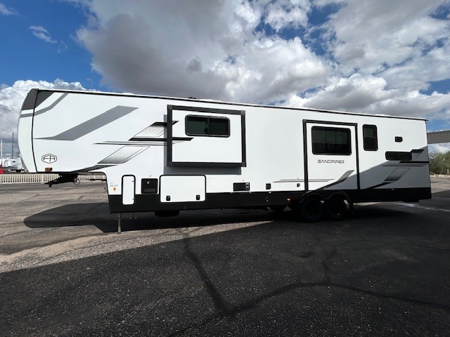 You will find the perfect balance of size, space, features, and luxury with any one of these Forest River Sandpiper fifth wheels! They have a cambered powder coated frame with rust prohibitor, and a fully enclosed underbelly for added protection against the elements. Also, the power front jacks with spring-loaded pins enhance the convenience, speed, and safety. The large, tinted windows come with a 80/20 UV prohibitors. Some hassle-free amenities include a 60k BTU on-demand water heater, porcelain foot flush toilet(s), tire pressure monitor system, and an electric leveling system! Inside, you'll enjoy stainless steel kitchen package, solid surface kitchen countertops, Beachside Sundance Congoleum linoleum, recessed residential lighting, and many more comforts!