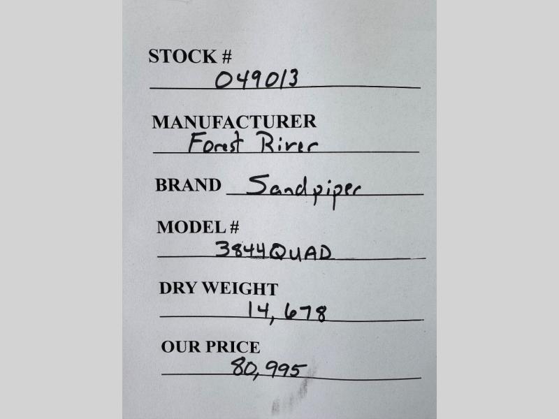 Forest River Sandpiper fifth wheel 3844QUAD highlights: