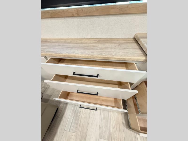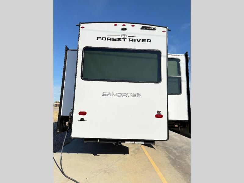 You will find the perfect balance of size, space, features, and luxury with any one of these Forest River Sandpiper fifth wheels! They have a cambered powder coated frame with rust prohibitor, and a fully enclosed underbelly for added protection against the elements. Also, the power front jacks with spring-loaded pins enhance the convenience, speed, and safety. The large, tinted windows come with a 80/20 UV prohibitors. Some hassle-free amenities include a 60k BTU on-demand water heater, porcelain foot flush toilet(s), tire pressure monitor system, and an electric leveling system! Inside, you'll enjoy stainless steel kitchen package, solid surface kitchen countertops, Beachside Sundance Congoleum linoleum, recessed residential lighting, and many more comforts!