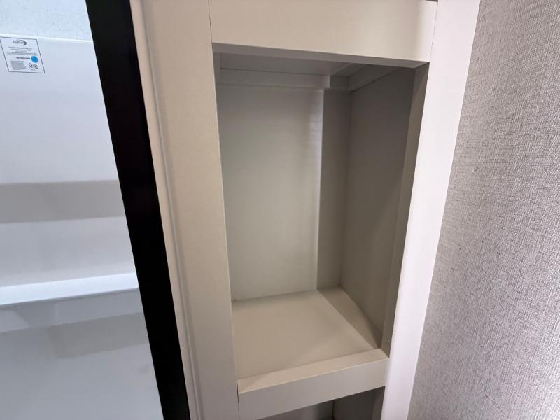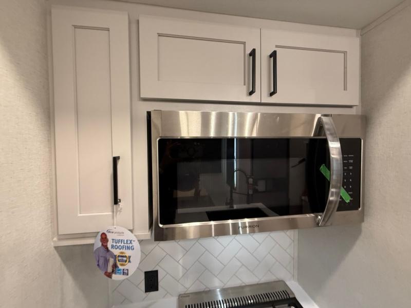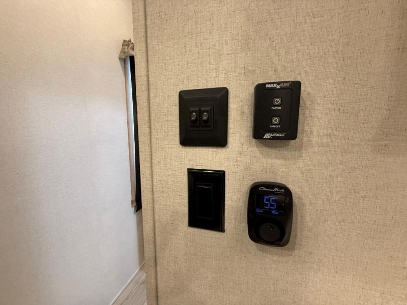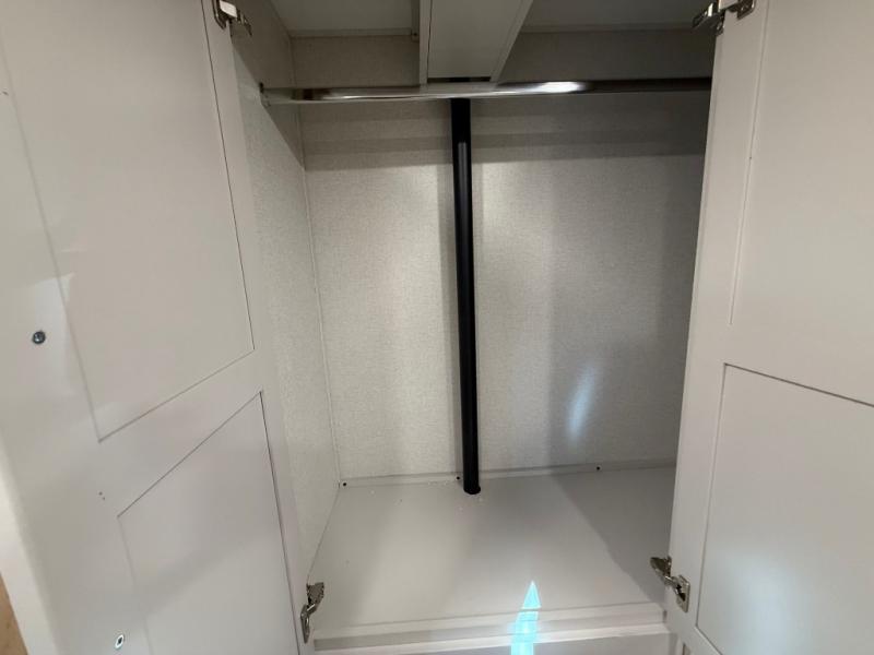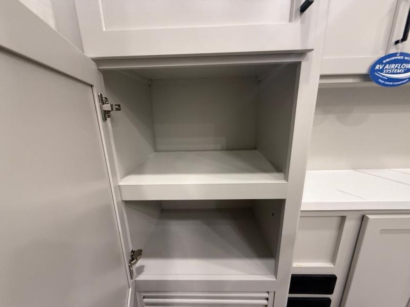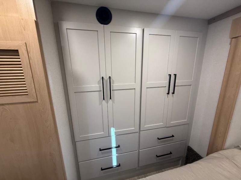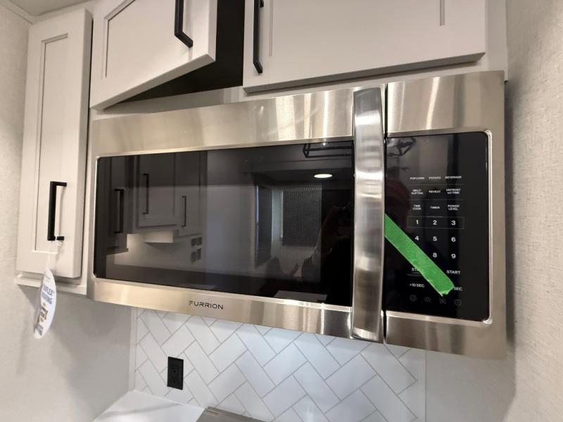 Wow! Check out this fifth wheel with a full loft for the little ones with two bunk mats, two wardrobe bookcases and a wardrobe/cabinet for ample storage. The main floor includes five slides for maximum space, a front living area with dual hide-a-bed sofas, plus an entertainment center with a 50" flat screen TV for movie nights! Once your guests have converted the living room to their bedroom at night, you can take the rear private bedroom. There is a king bed slide out here, a wardrobe, plus a closet with washer and dryer prep for full-time living. The full bath is easily accessible for everyone, and the middle kitchen will be a favorite with the chef of your group. Here, you'll find a 12V refrigerator, an island, tons of counter space, plus a hutch to display nice dishes, and a pantry for dry goods. Don't let this fifth wheel slip away!