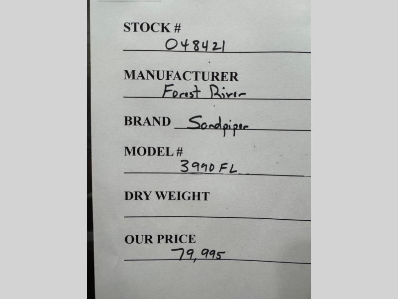 Forest River Sandpiper fifth wheel 3990FL highlights:
