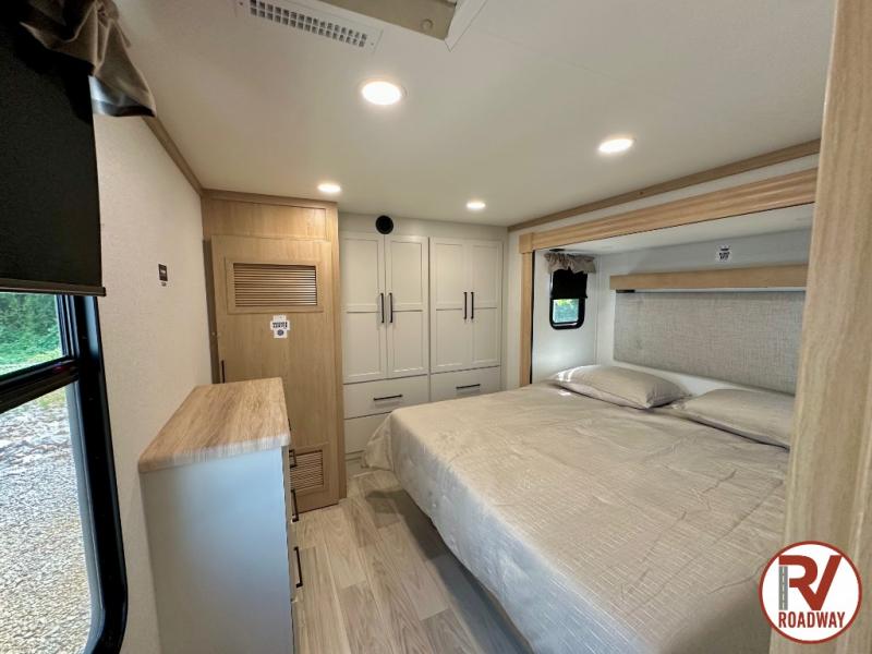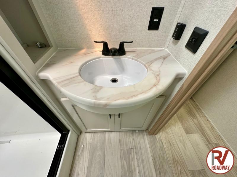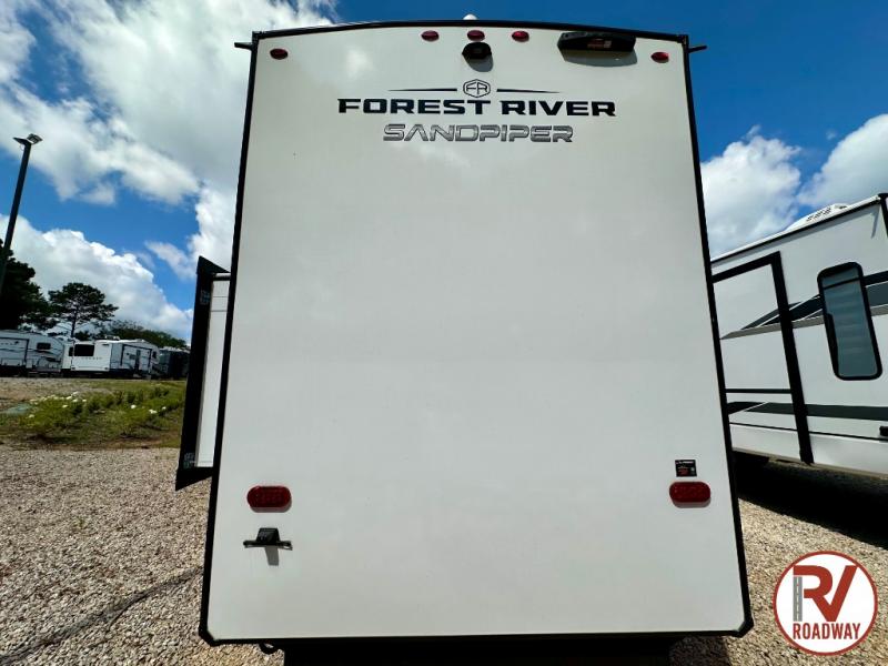 You will find the perfect balance of size, space, features, and luxury with any one of these Forest River Sandpiper fifth wheels! They are constructed with a welded aluminum framed vacuum bonded laminated superstructure, a cambered powder coated frame with rust prohibitor, and a fully enclosed underbelly for added protection against the elements. The large tinted windows come with a 80/20 UV prohibitor or you can choose the optional dual pane windows. Some hassle-free amenities include a 60k BTU on-demand water heater, full coach water filter system, tire pressure monitor system, and an electric leveling system! Inside, you'll enjoy stainless steel appliances, solid surface countertops, Beachside Sundance linoleum, recessed residential lighting, and many more comforts!