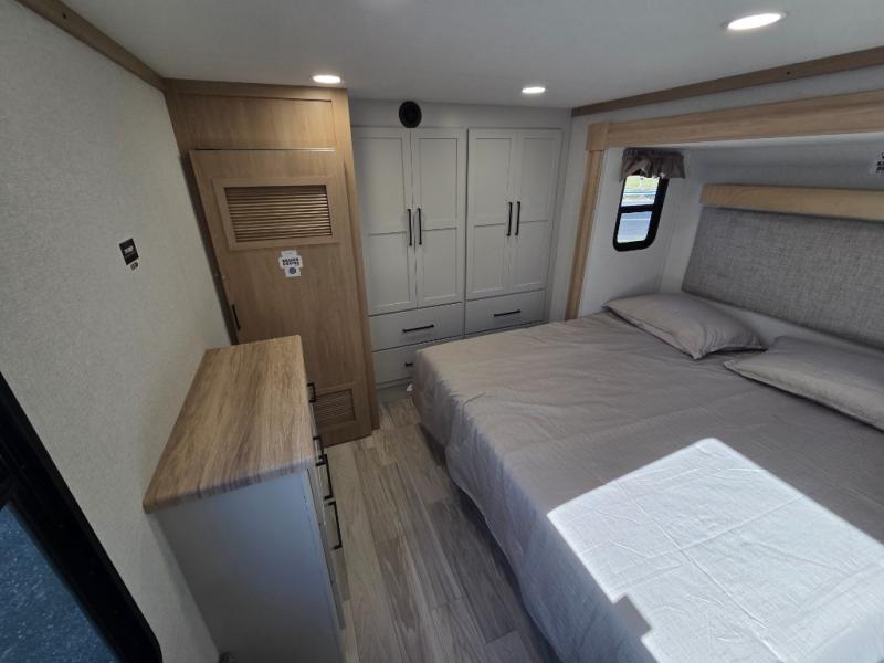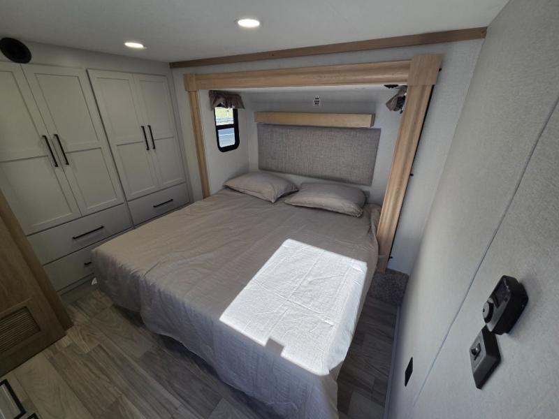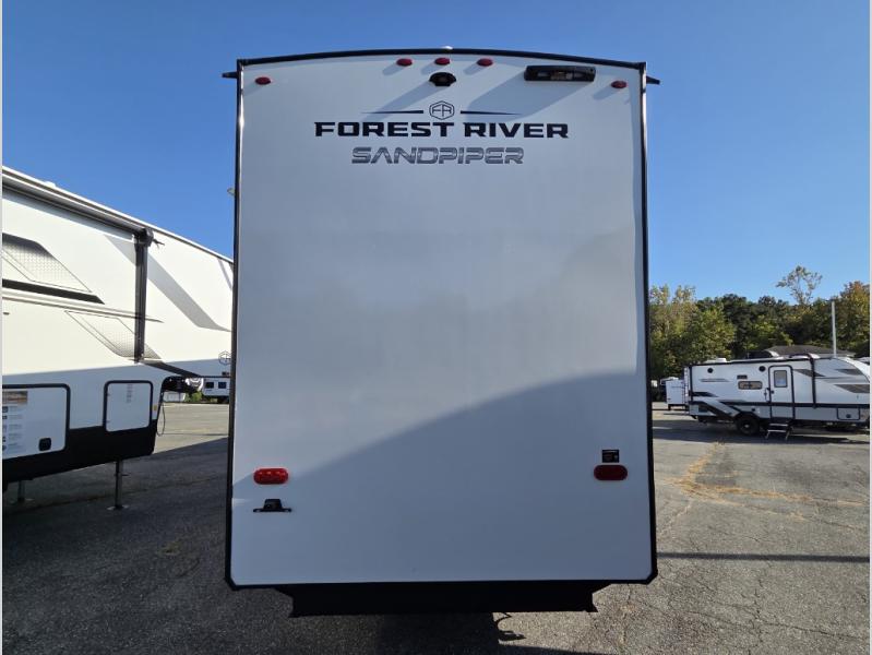 You will find the perfect balance of size, space, features, and luxury with any one of these Forest River Sandpiper fifth wheels! They are constructed with a welded aluminum framed vacuum bonded laminated superstructure, a cambered powder coated frame with rust prohibitor, and a fully enclosed underbelly for added protection against the elements. The large tinted windows come with a 80/20 UV prohibitor or you can choose the optional dual pane windows. Some hassle-free amenities include a 60k BTU on-demand water heater, full coach water filter system, tire pressure monitor system, and an electric leveling system! Inside, you'll enjoy stainless steel appliances, solid surface countertops, Beachside Sundance linoleum, recessed residential lighting, and many more comforts!