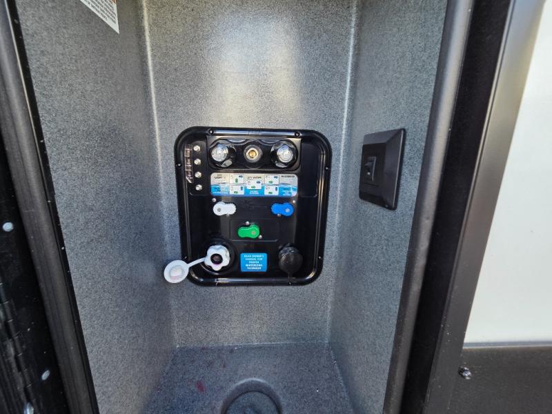 Wow! Check out this fifth wheel with a full loft for the little ones with two bunk mats, two wardrobe bookcases and a wardrobe/cabinet for ample storage. The main floor includes five slides for maximum space, a front living area with dual hide-a-bed sofas, plus an entertainment center with a 50" flat screen TV for movie nights! Once your guests have converted the living room to their bedroom at night, you can take the rear private bedroom. There is a king bed slide out here, a wardrobe, plus a closet with washer and dryer prep for full-time living. The full bath is easily accessible for everyone, and the middle kitchen will be a favorite with the chef of your group. Here, you'll find a 12V refrigerator, an island, tons of counter space, plus a hutch to display nice dishes, and a pantry for dry goods. Don't let this fifth wheel slip away!