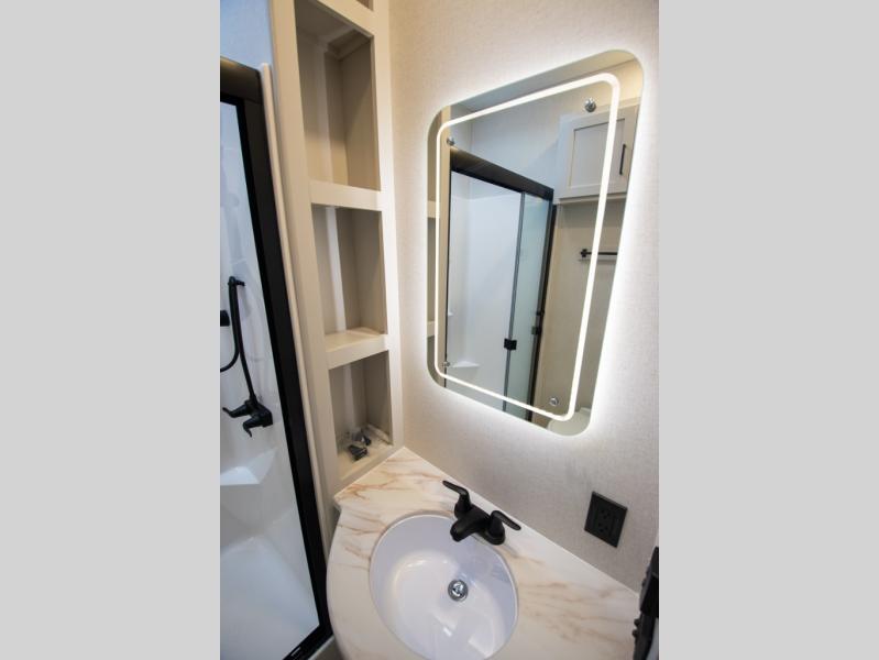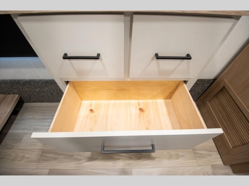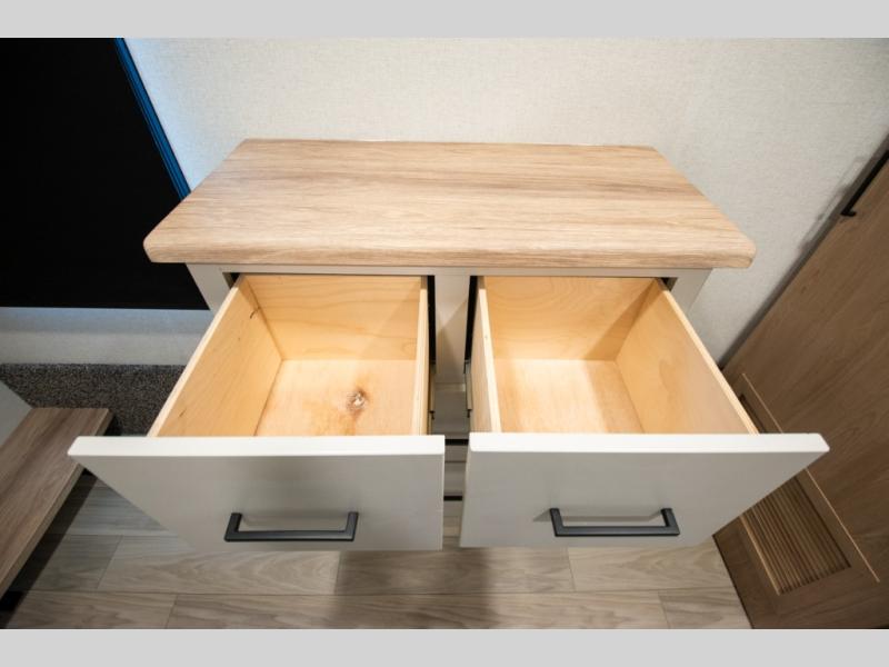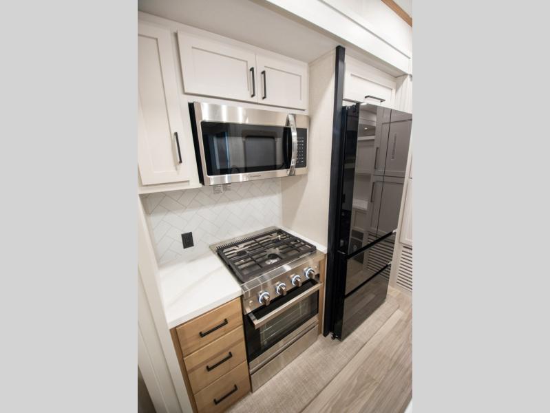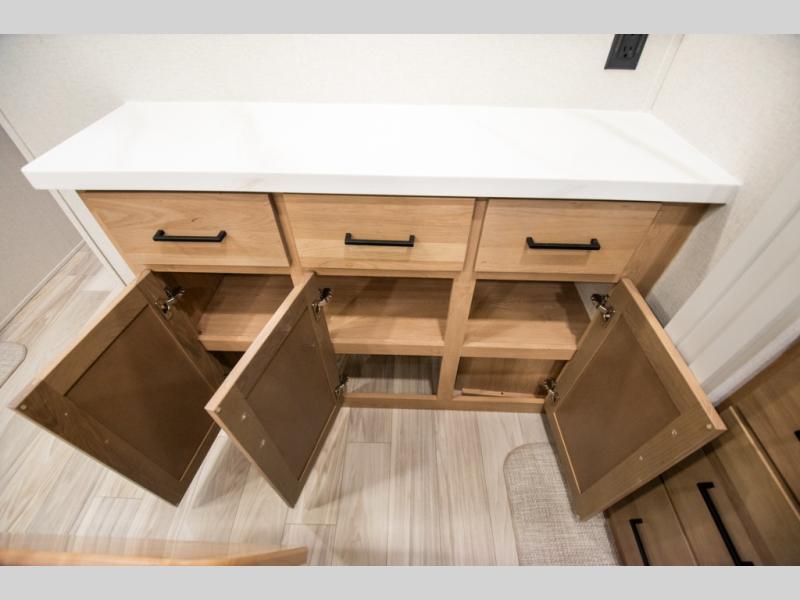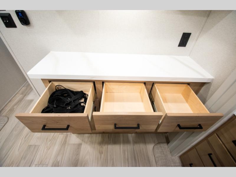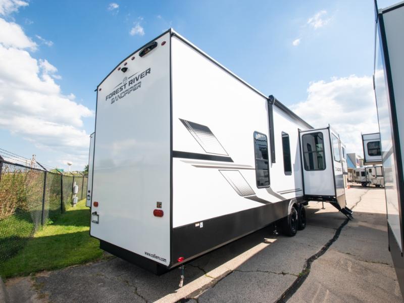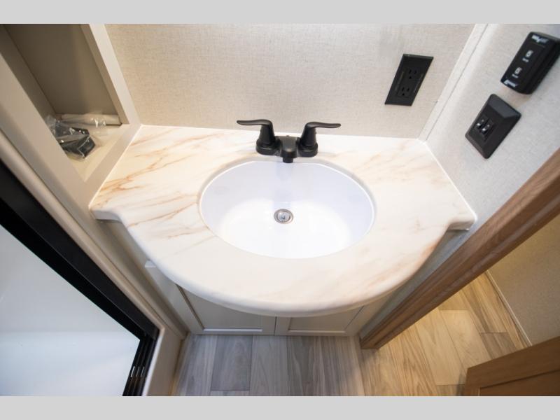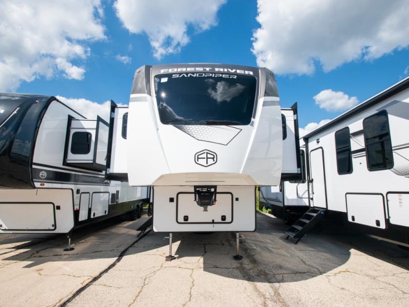 You will find the perfect balance of size, space, features, and luxury with any one of these Forest River Sandpiper fifth wheels! They are constructed with a welded aluminum framed vacuum bonded laminated superstructure, a cambered powder coated frame with rust prohibitor, and a fully enclosed underbelly for added protection against the elements. The large tinted windows come with a 80/20 UV prohibitor or you can choose the optional dual pane windows. Some hassle-free amenities include a 60k BTU on-demand water heater, full coach water filter system, tire pressure monitor system, and an electric leveling system! Inside, you'll enjoy stainless steel appliances, solid surface countertops, Beachside Sundance linoleum, recessed residential lighting, and many more comforts!