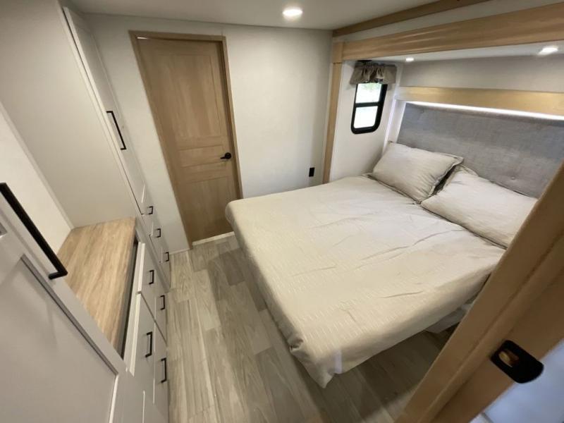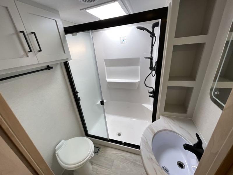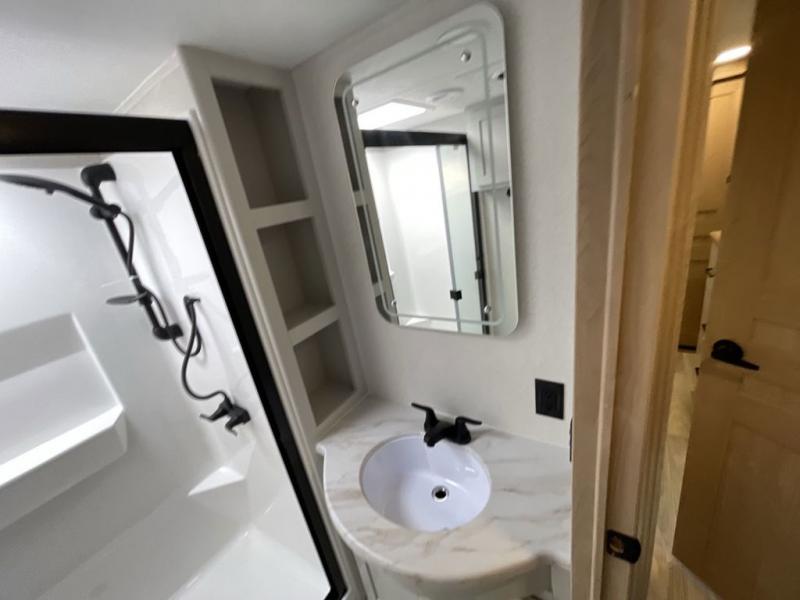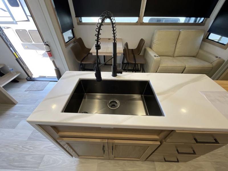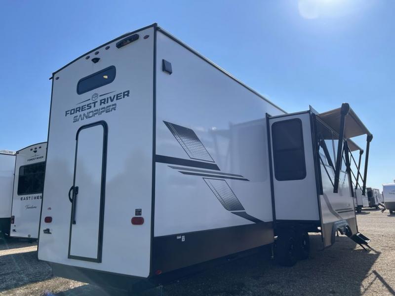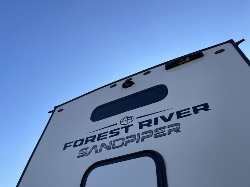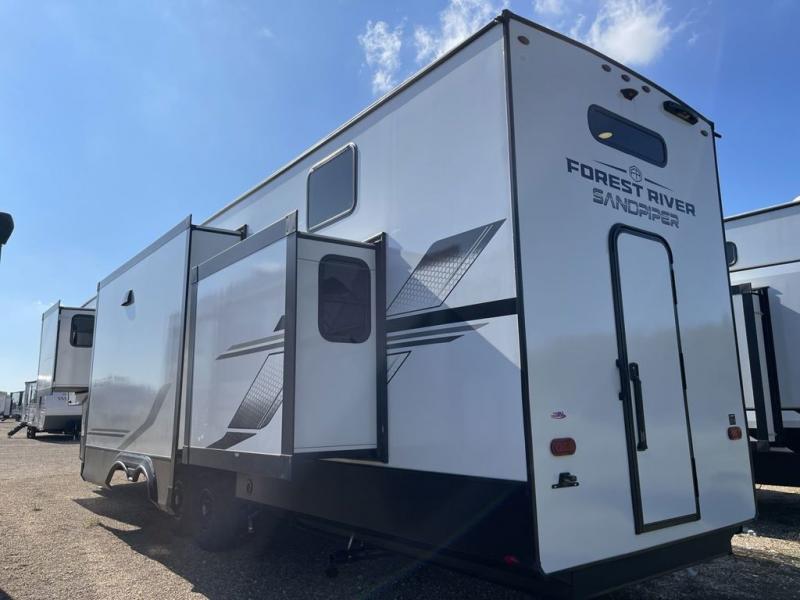 You will find the perfect balance of size, space, features, and luxury with any one of these Forest River Sandpiper fifth wheels! They have a cambered powder coated frame with rust prohibitor, and a fully enclosed underbelly for added protection against the elements. Also, the power front jacks with spring-loaded pins enhance the convenience, speed, and safety. The large, tinted windows come with a 80/20 UV prohibitors. Some hassle-free amenities include a 60k BTU on-demand water heater, porcelain foot flush toilet(s), tire pressure monitor system, and an electric leveling system! Inside, you'll enjoy stainless steel kitchen package, solid surface kitchen countertops, Beachside Sundance Congoleum linoleum, recessed residential lighting, and many more comforts!