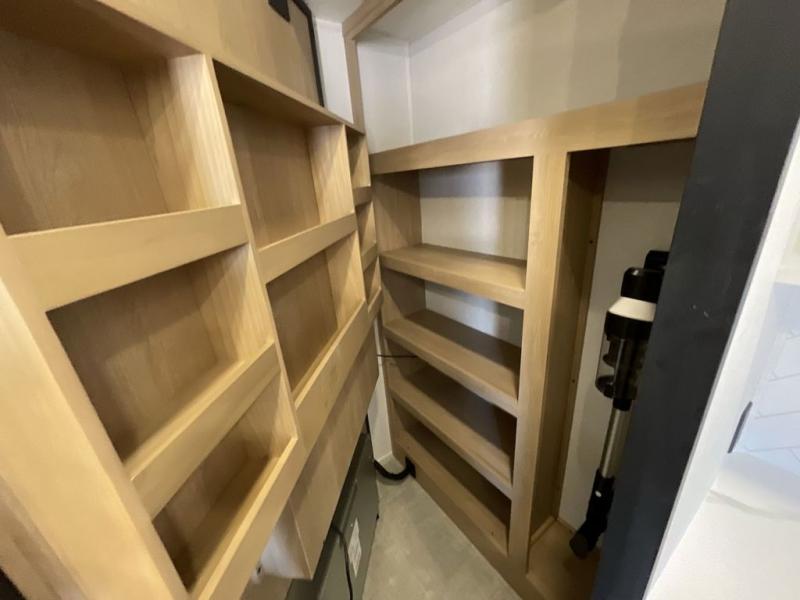 Enjoy a home on wheels with this fifth wheel! There are two bedrooms to choose from plus an upper loft with two 32" x 74" bunk mats, cabinets, and TV prep. The front private bedroom has a queen bed slide across from a dresser and next to a front wardrobe that is prepped to add an optional washer and dryer. The second bedroom has a queen bed slide across from a dresser with wardrobes on either side, plus it's very own full rear bathroom which has a tub and a rear entry/exit door to the unit. The second full bathroom has a one-piece fiberglass shower so everyone can get ready quickly in the morning. Prepare your best home cooked meals with the kitchen island and three burner cooktop then enjoy it at the free-standing dinette. Relax in true comfort each night in the theater seating across from the fireplace and 50" TV at the entertainment center!