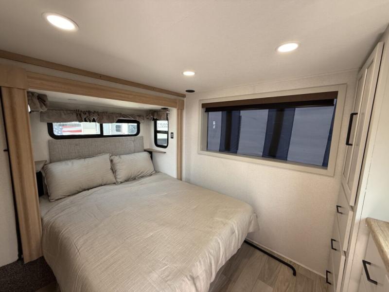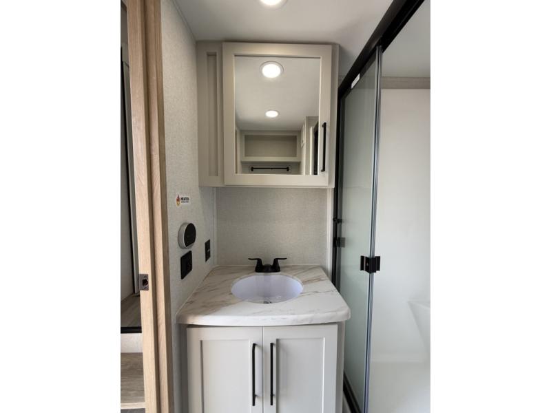 The Sandpiper Destination Trailers by Forest River are ready for extended stays at the location of your choice! The cambered powder coated frame with rust prohibitor will help extend the life of your RV and the Underbelly Armor will protect your trailer and provide better insulation. There are also gel coated color matched exterior fiberglass sidewalls outside, along with rain gutters with extra long drip spouts to prevent black streaking, and exterior speakers to listen to your favorite tunes. The Destination Package includes features to make your trips hassle-free, like the two 15,000 BTU A/C units, detachable hitch, and on-demand water heater. A commercial style kitchen faucet and designer backsplash is included with the Extended Stay Package, as well as a full coach water filter system, solid surface countertops, and a stainless steel apron sink with a strainer to name a few comforts. Available options include a central vacuum system, stabilizer jacks, plus dual pane windows and a 40K BTU furnace!