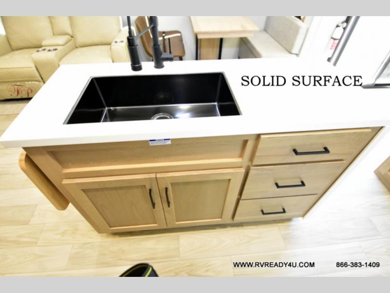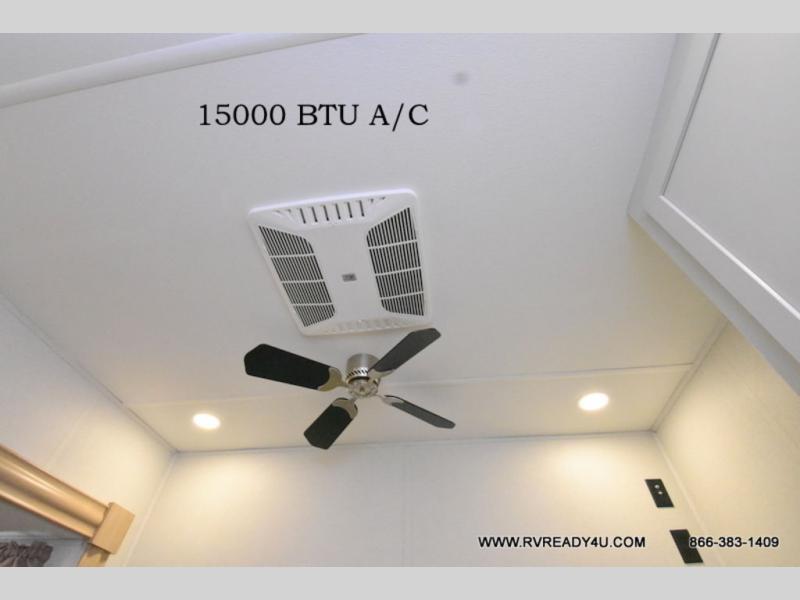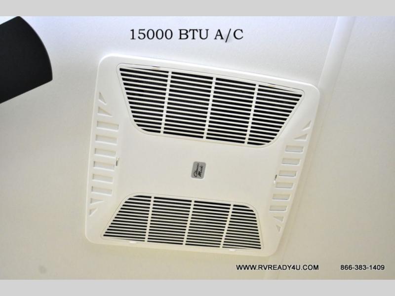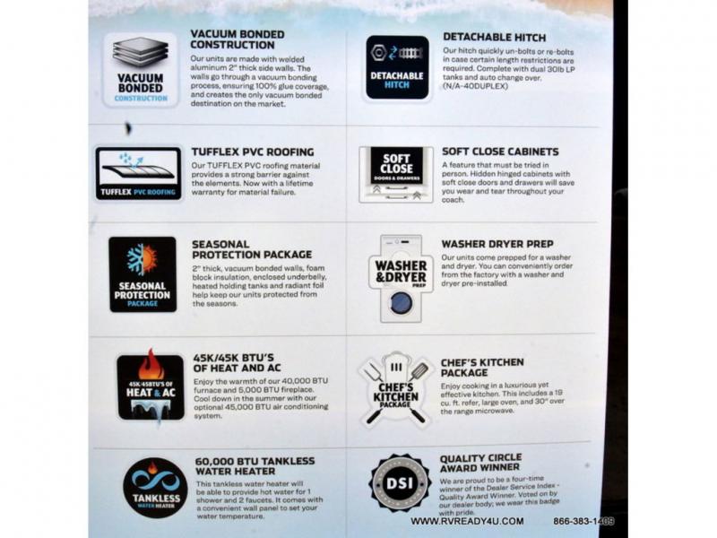 With each Sandpiper Destination Trailer by Forest River you will enjoy many luxurious features, such as crown molding over the kitchen cabinets, solid surface kitchen countertops, a memory foam mattress, plus so much more. The extra large picture windows throughout let natural light in and provide beautiful outdoor views, and each model includes three or more slides for added interior space. You'll find many exterior conveniences, like the porch light with an interior switch, the rain gutters with extra long drip spouts to prevent black streaking, and an electric awning with LED light strip, plus more! You will stay comfortable year around with dual 15,000 A/C units plus each model is constructed with an Underbelly Armor for better protection and insulation!