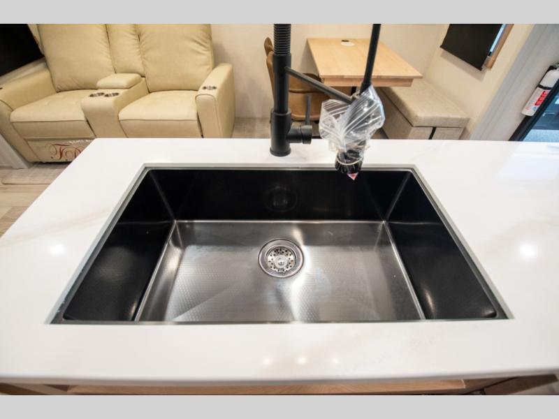With each Sandpiper Destination Trailer by Forest River you will enjoy many luxurious features, such as crown molding over the kitchen cabinets, solid surface kitchen countertops, a memory foam mattress, plus so much more. The extra large picture windows throughout let natural light in and provide beautiful outdoor views, and each model includes three or more slides for added interior space. You'll find many exterior conveniences, like the porch light with an interior switch, the rain gutters with extra long drip spouts to prevent black streaking, and an electric awning with LED light strip, plus more! You will stay comfortable year around with dual 15,000 A/C units plus each model is constructed with an Underbelly Armor for better protection and insulation!