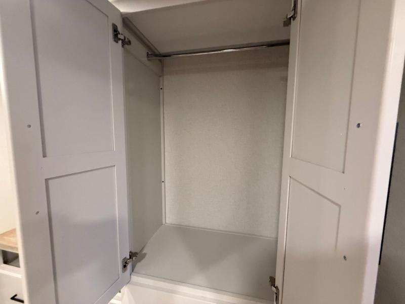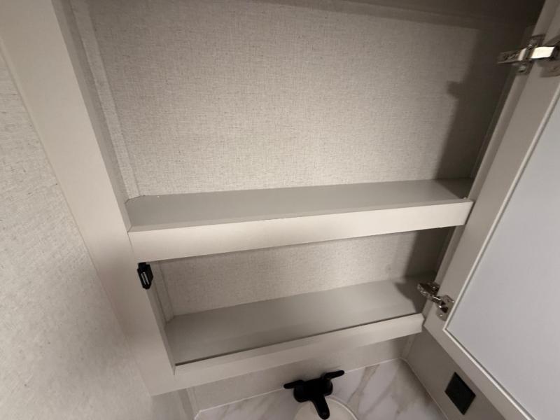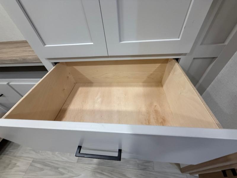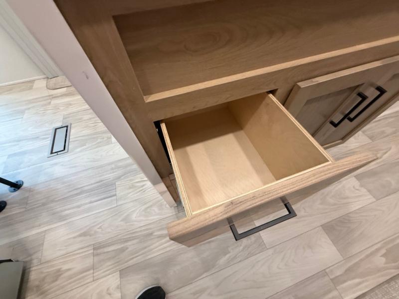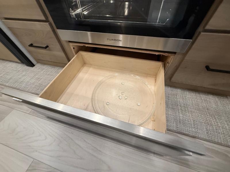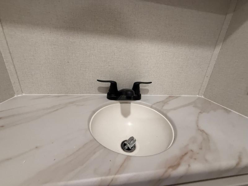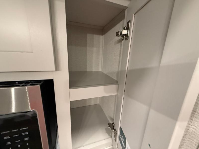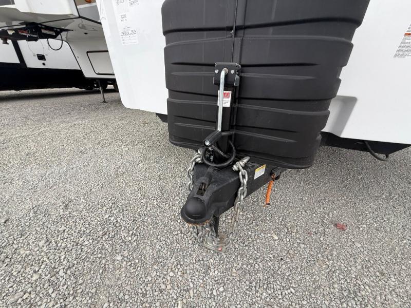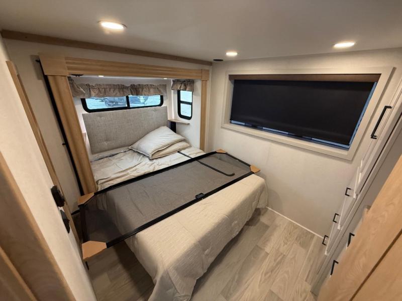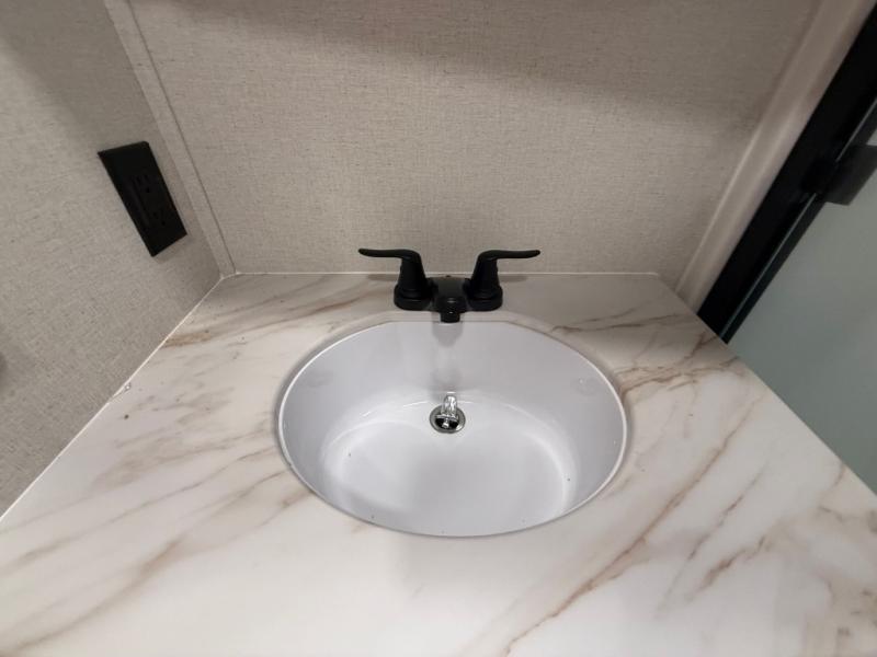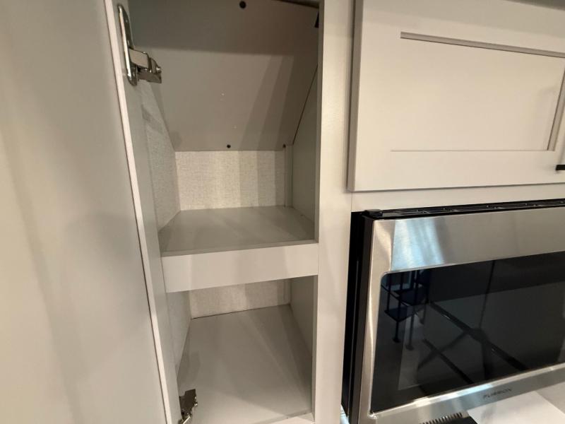 You won't believe the comfort and convenience found in this destination trailer. There are two private bedrooms; one up front with a queen bed slide out and storage space, and one in back with a queen bed slide out and a half bath! There is even washer and dryer prep here if you want to add those appliances and the second entry door is also found in this location so you can easily slip out in the morning. Above each of these rooms is a loft providing three total bunk mats for sleeping, storage cabinets, and TV prep if you want to add entertainment. Everyone can meet in the combined kitchen and living room that includes dual opposing slides, a 60" theater seating across from a 50" flat screen TV and fireplace, plus a free-standing table with chairs and a bench to dine at. The chef of your group will love the large kitchen island, Chef Collection three burner range, and a 16.2 cu. ft. refrigerator for food storage.