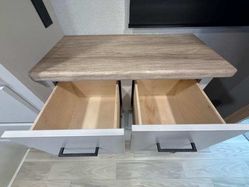 With each Sandpiper Destination Trailer by Forest River you will enjoy many luxurious features, such as crown molding over the kitchen cabinets, solid surface kitchen countertops, a memory foam mattress, plus so much more. The extra large picture windows throughout let natural light in and provide beautiful outdoor views, and each model includes three or more slides for added interior space. You'll find many exterior conveniences, like the porch light with an interior switch, the rain gutters with extra long drip spouts to prevent black streaking, and an electric awning with LED light strip, plus more! You will stay comfortable year around with dual 15,000 A/C units plus each model is constructed with an Underbelly Armor for better protection and insulation!