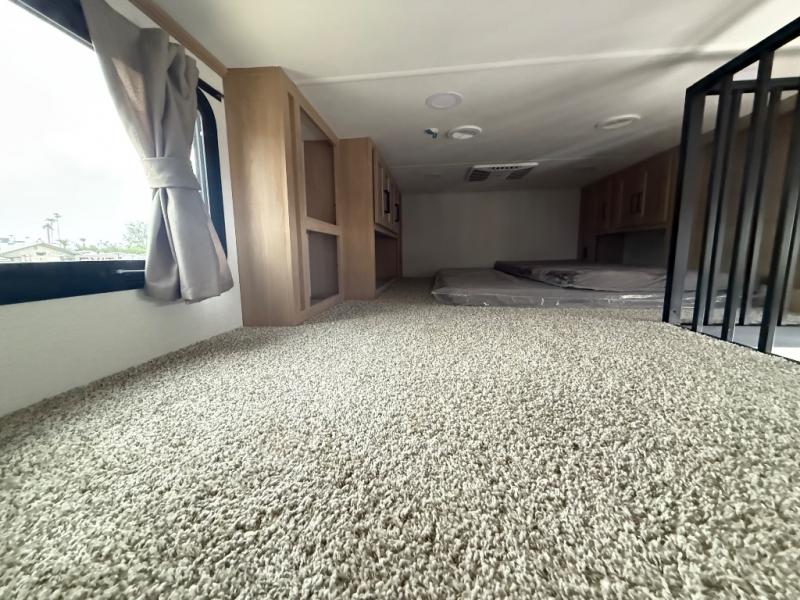 - Sleeping: The trailer features two private bedrooms with queen beds, plus two loft areas with three bunk mats, offering extensive sleeping space.