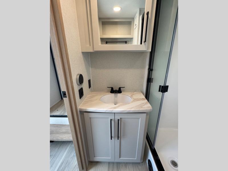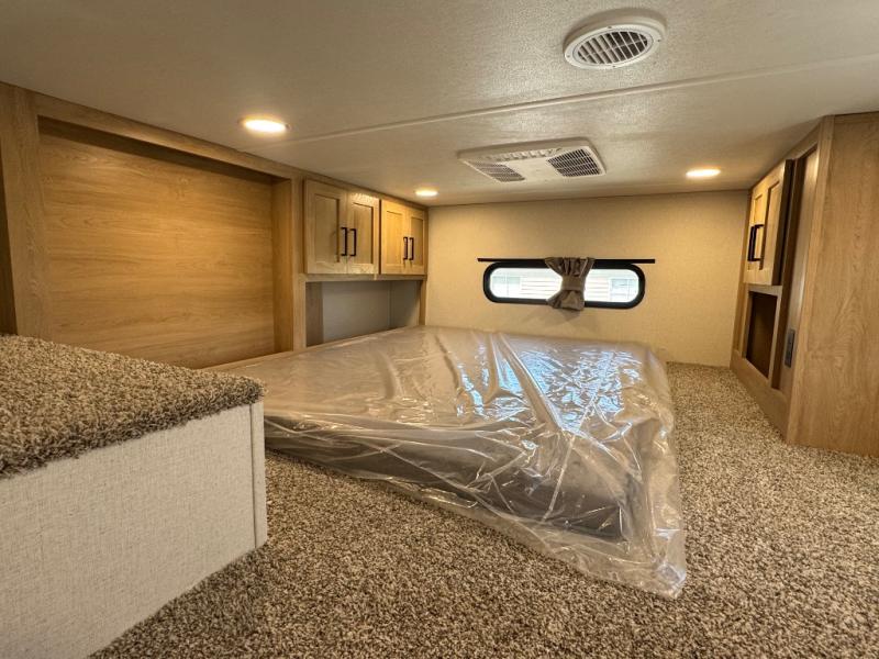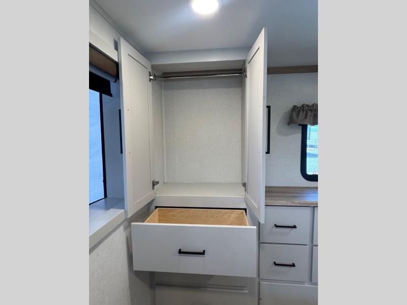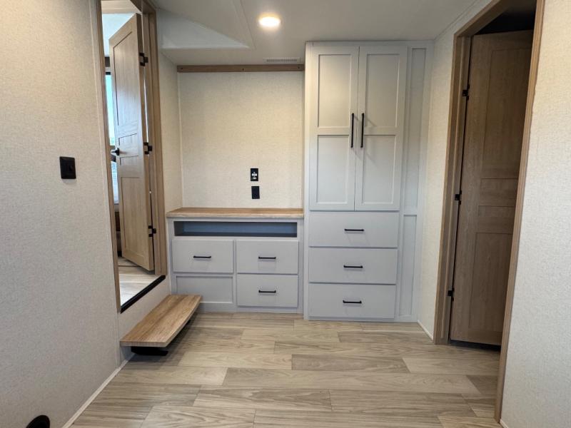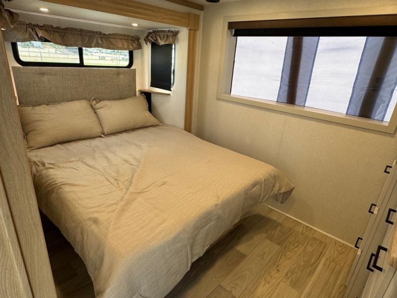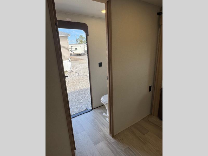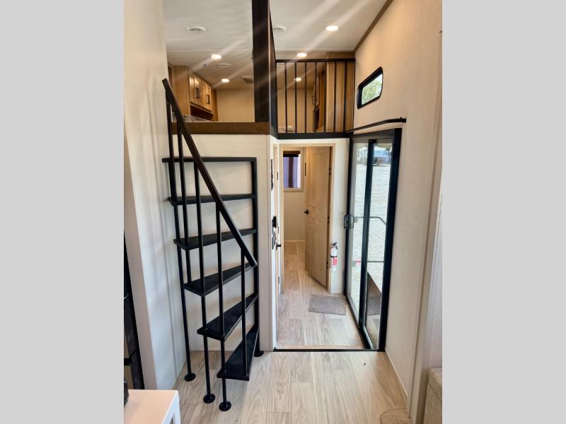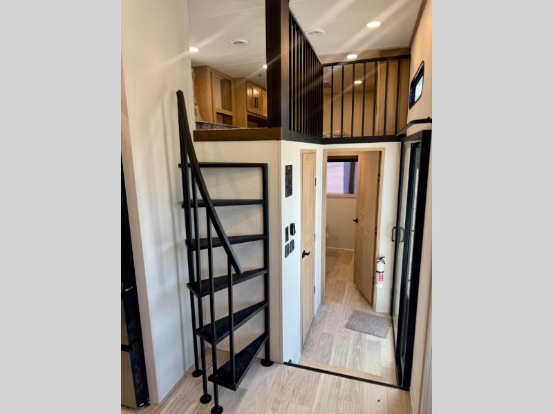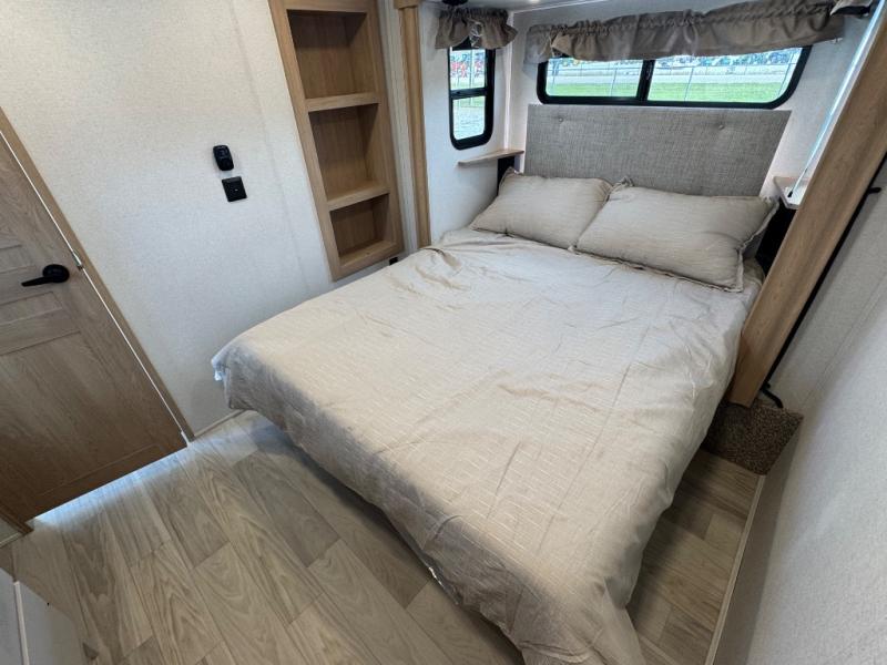 2-bed, 1.5-bath destination trailer featuring two lofts, residential kitchen appliances, a 19 cu. ft. refrigerator, and 2 air conditioners for comfort. Key features include an underbelly armor for insulation and protection, dual awnings, solid steps, and a detached hitch as part of a destination package. It's designed with features like dual entry/exit doors and ample storage for extended stays. Call for more details! 601-207-5300