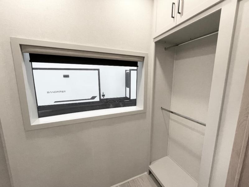 With each Sandpiper Destination Trailer by Forest River you will enjoy many luxurious features, such as crown molding over the kitchen cabinets, solid surface kitchen countertops, a memory foam mattress, plus so much more. The extra large picture windows throughout let natural light in and provide beautiful outdoor views, and each model includes three or more slides for added interior space. You'll find many exterior conveniences, like the porch light with an interior switch, the rain gutters with extra long drip spouts to prevent black streaking, and an electric awning with LED light strip, plus more! You will stay comfortable year around with dual 15,000 A/C units plus each model is constructed with an Underbelly Armor for better protection and insulation!