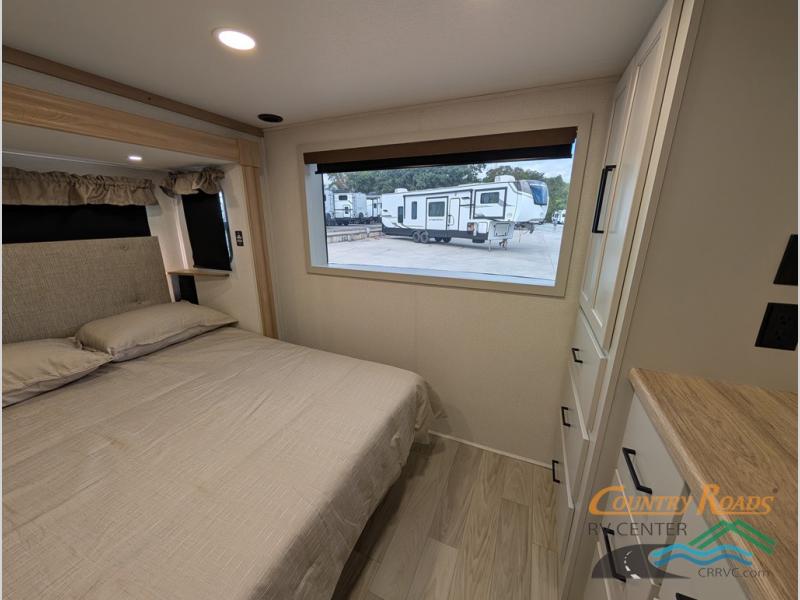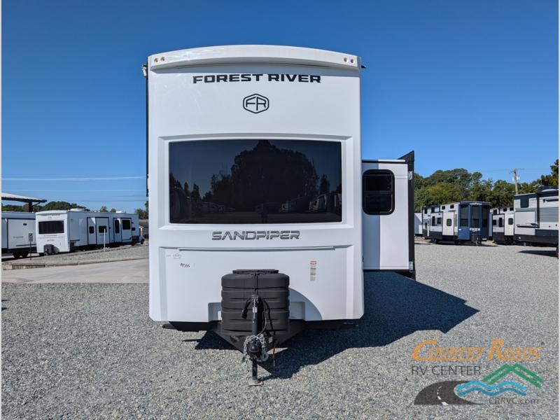 The Sandpiper Destination Trailers by Forest River are ready for extended stays at the location of your choice! The cambered powder coated frame with rust prohibitor will help extend the life of your RV and the Underbelly Armor will protect your trailer and provide better insulation. There are also color matched exterior fiberglass sidewalls outside, along with rain gutters with extra long drip spouts to prevent black streaking, and an exterior porch light just like at home. The Destination Package includes features to make your trips hassle-free, like the two 15,000 BTU A/C units, on-demand water heater, and Chef Collection three burner 24" range. A commercial style kitchen faucet and designer backsplash is included with the Extended Stay Package, as well as solid surface countertops, and a stainless steel apron sink with a strainer to name a few comforts. Available options include a central vacuum system, stabilizer jacks, plus dual pane windows and more!