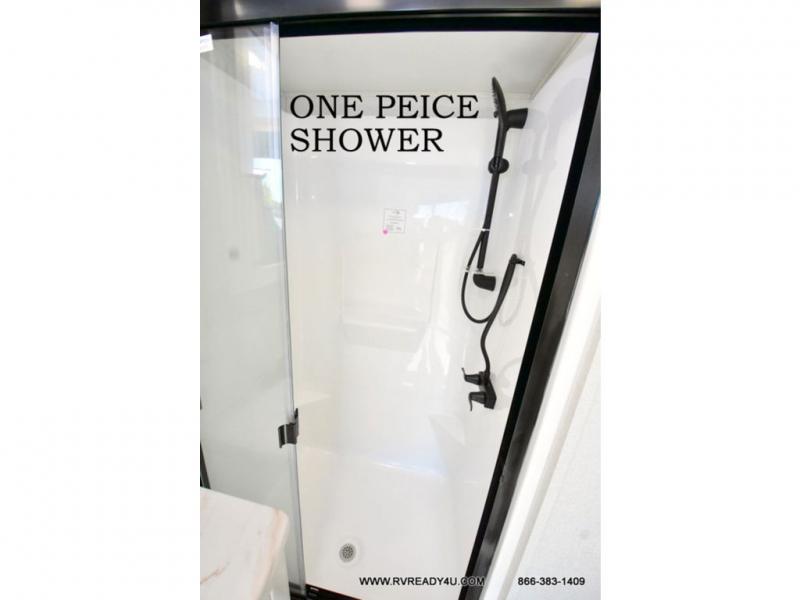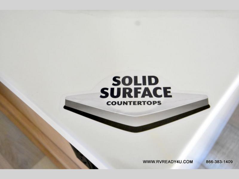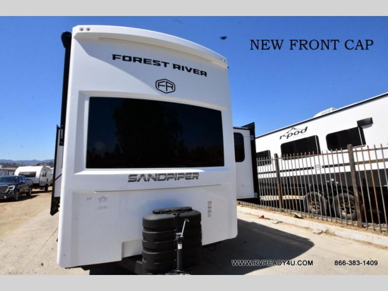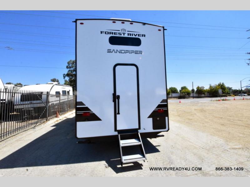 With each Sandpiper Destination Trailer by Forest River you will enjoy many luxurious features, such as crown molding over the kitchen cabinets, solid surface kitchen countertops, a memory foam mattress, plus so much more. The extra large picture windows throughout let natural light in and provide beautiful outdoor views, and each model includes three or more slides for added interior space. You'll find many exterior conveniences, like the porch light with an interior switch, the rain gutters with extra long drip spouts to prevent black streaking, and an electric awning with LED light strip, plus more! You will stay comfortable year around with dual 15,000 A/C units plus each model is constructed with an Underbelly Armor for better protection and insulation!
