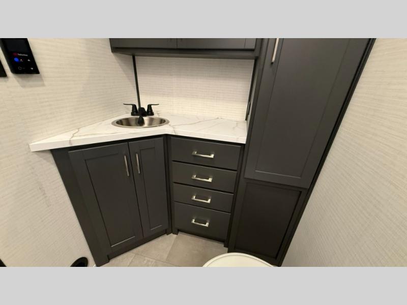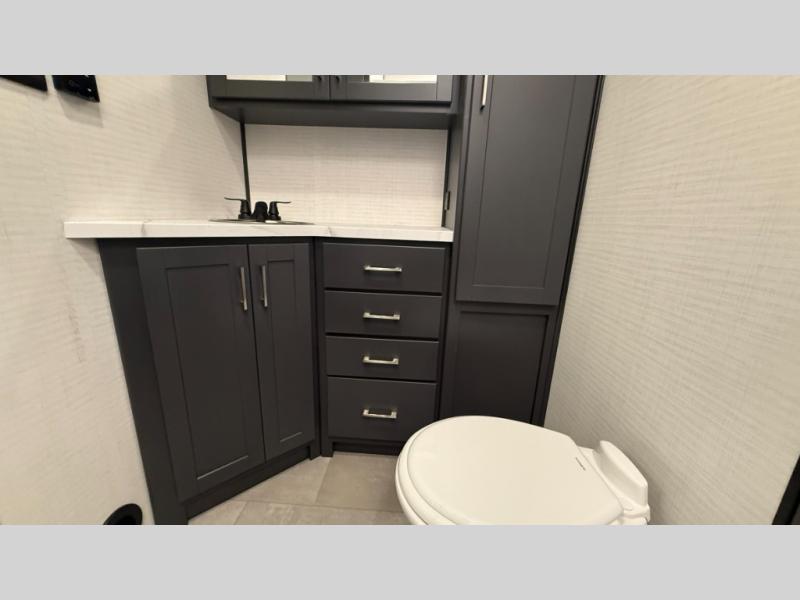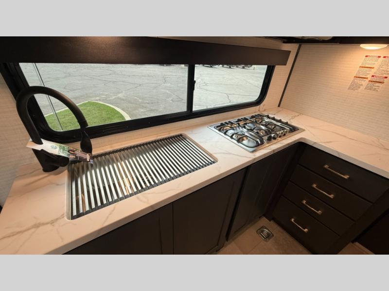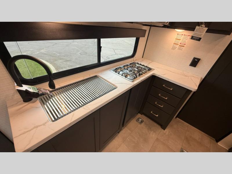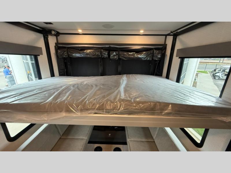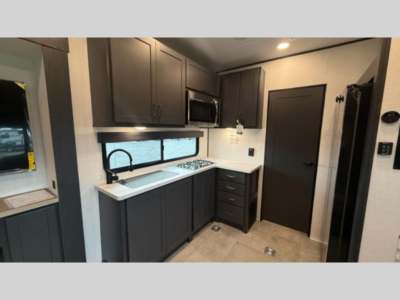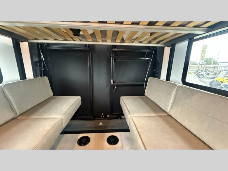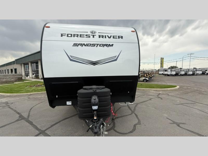 The Sandstorm toy haulers by Forest River let you take your adventures up a notch! There are four different build levels to choose from to best fit your needs, budget, and style. Each travel trailer and fifth wheel include flipped axles with no interior drive on wheel wells, Flip tread solid entry steps, and tie-downs mounted to steel throughout to keep toys secure on the way to the campground. The power tongue jack will make it easier than ever to hitch up and go, and the Lippert ladder prep means you can add this option to easily access the roof. A 40 gallon fuel station comes standard to keep your toys ready to go when you are, and the dual 20 lbs. propane tanks will let you hook up the grill to make dinner for your whole crew. Some of the other convenient features include a spare tire (with carrier on tongue pull) if an unfortunate flat happens, a 335W solar panel, and a 1.5 cu. ft. convection microwave. And don't forget about the available options that will allow you to customize your toy hauler exactly how you want it!