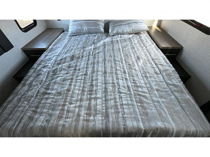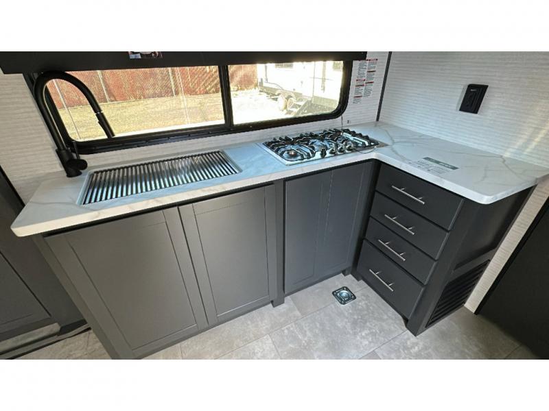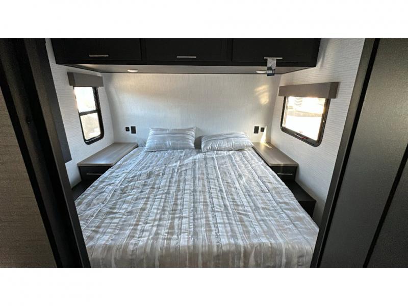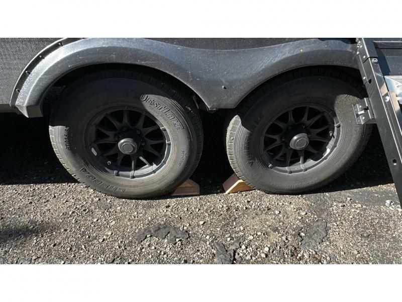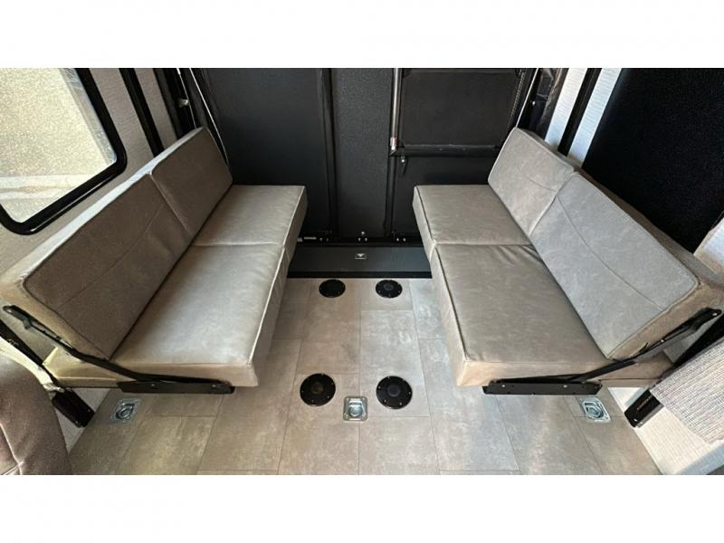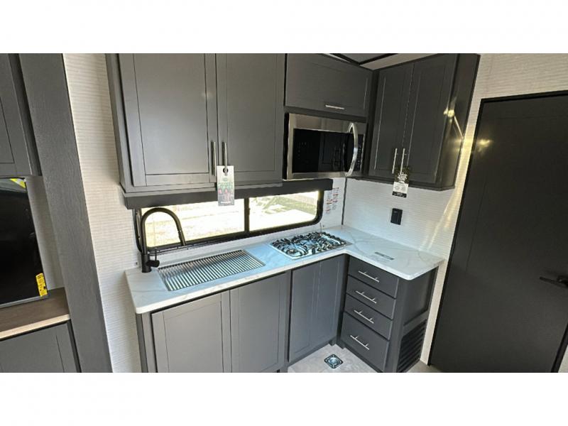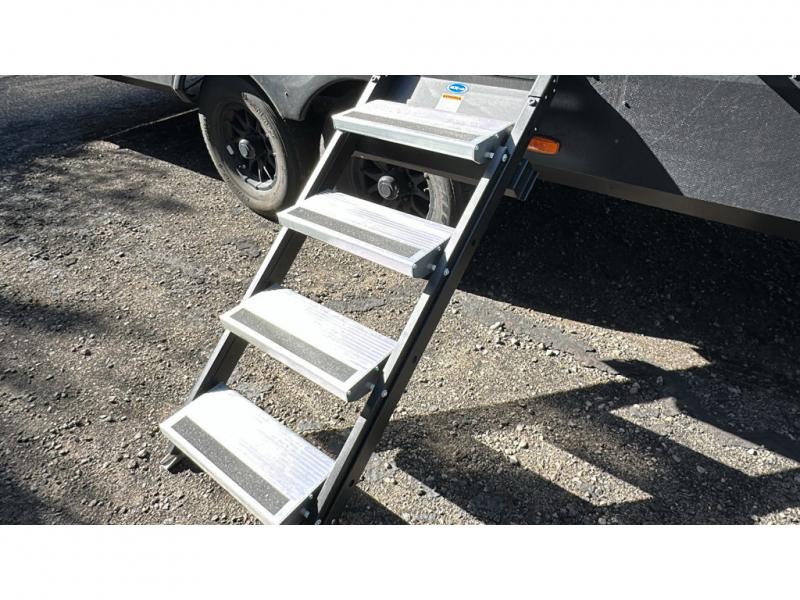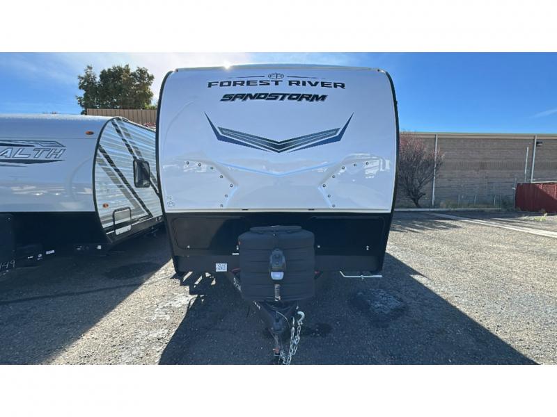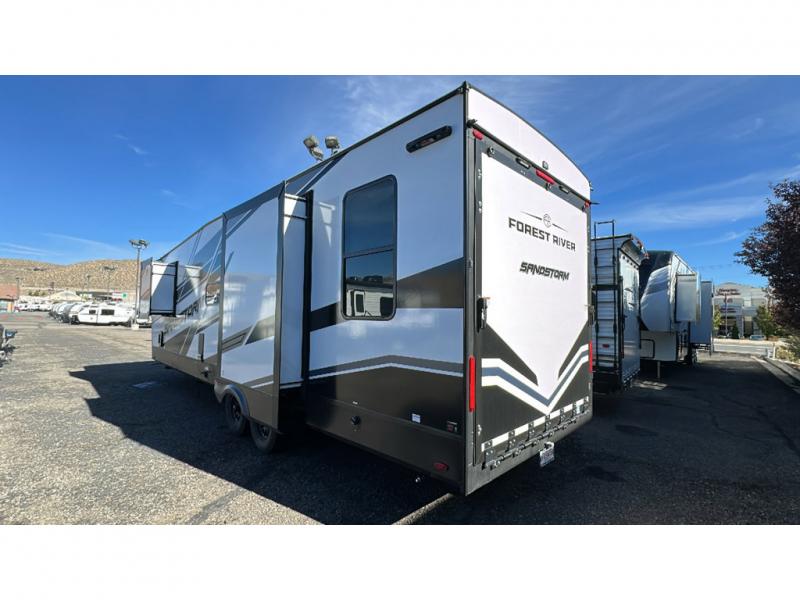 The Sandstorm toy haulers by Forest River let you take your adventures up a notch! There are four different build levels to choose from to best fit your needs, budget, and style. Each travel trailer and fifth wheel include flipped axles with no interior drive on wheel wells, Flip tread solid entry steps, and tie-downs mounted to steel throughout to keep toys secure on the way to the campground. The power tongue jack will make it easier than ever to hitch up and go, and the Lippert ladder prep means you can add this option to easily access the roof. A 40 gallon fuel station comes standard to keep your toys ready to go when you are, and the dual 20 lbs. propane tanks will let you hook up the grill to make dinner for your whole crew. Some of the other convenient features include a spare tire (with carrier on tongue pull) if an unfortunate flat happens, a 335W solar panel, and a 1.5 cu. ft. convection microwave. And don't forget about the available options that will allow you to customize your toy hauler exactly how you want it!