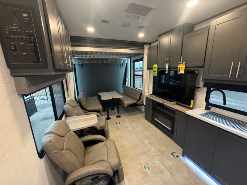 Enjoy flexible living and affordable costs with the Sandstorm fifth wheel and travel trailer toy haulers! The versatile garage areas can be used for both toy storage plus seating and sleeping spaces. Each model includes a ramp door with patio cables, a power tongue jack, and a 40-gallon fuel station to keep your bikes filled and ready for adventure. The residential king bed is sure to bring comfort each day, along with a tankless water heater so everyone can clean up after trail riding. There are a variety of floorplans to choose from, including GX models with added features for those who want to take their excursions up a notch!