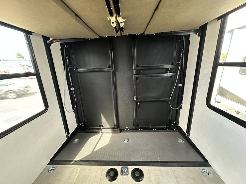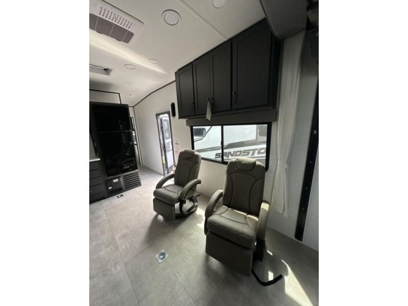Enjoy flexible living and affordable costs with the Sandstorm fifth wheel and travel trailer toy haulers! The versatile garage areas can be used for both toy storage plus seating and sleeping spaces. Each model includes a ramp door with patio cables, a power tongue jack, and a 40-gallon fuel station to keep your bikes filled and ready for adventure. The residential king bed is sure to bring comfort each day, along with a tankless water heater so everyone can clean up after trail riding. There are a variety of floorplans to choose from, including GX models with added features for those who want to take their excursions up a notch!