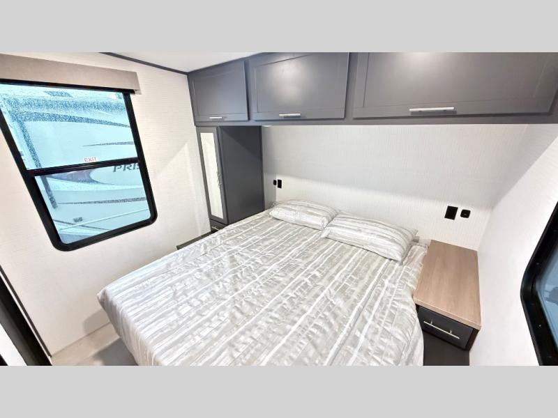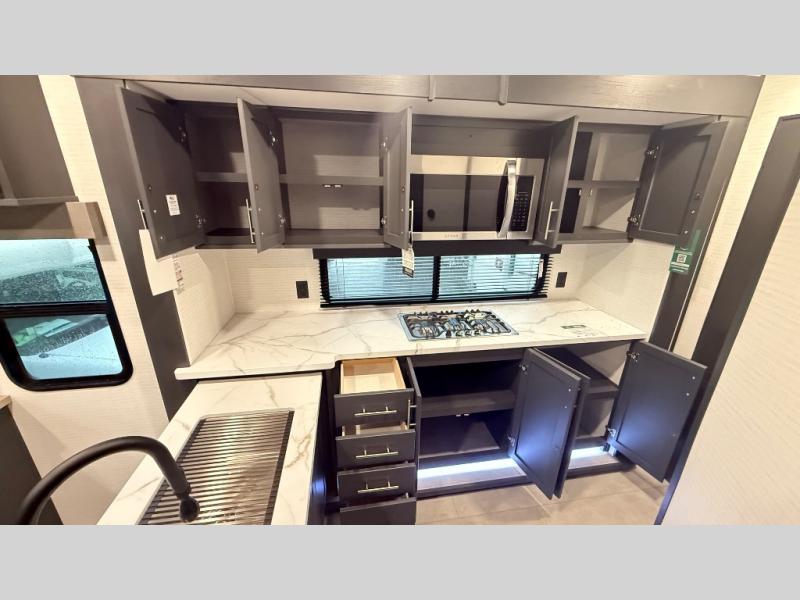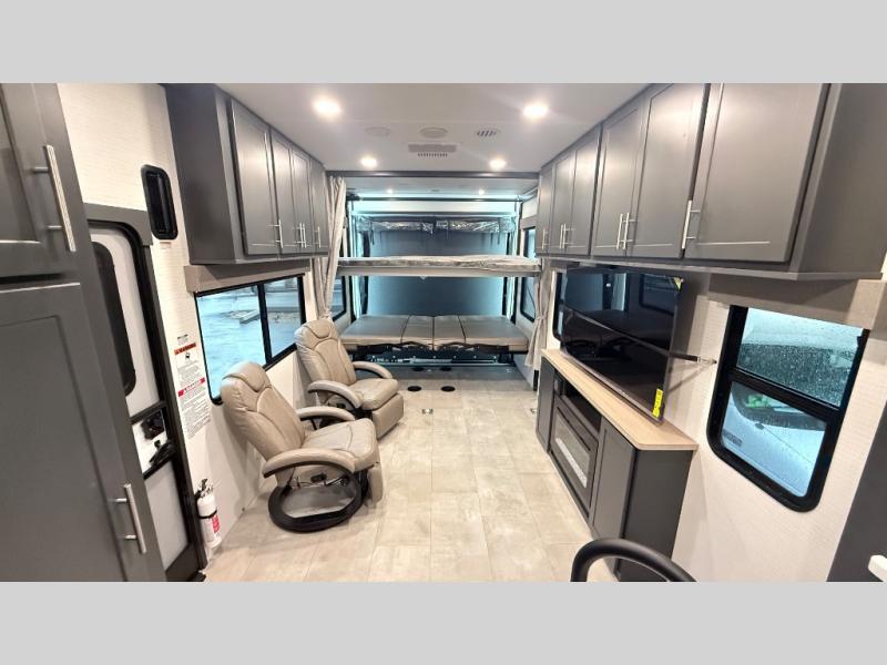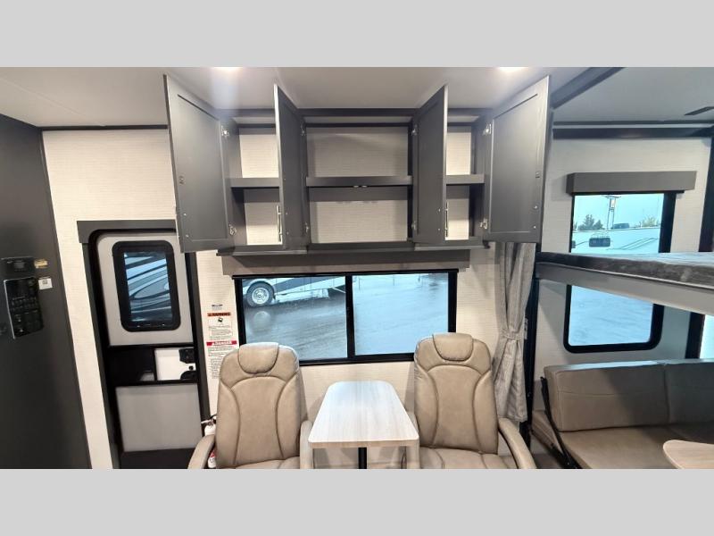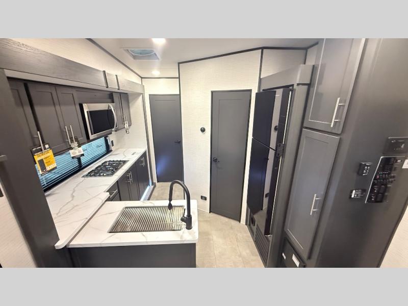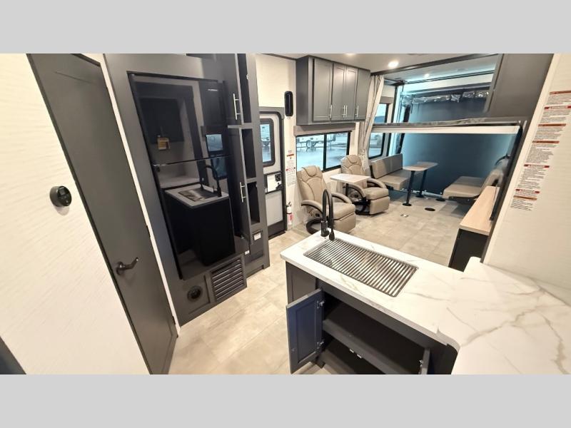 Enjoy flexible living and affordable costs with the Sandstorm fifth wheel and travel trailer toy haulers! The versatile garage areas can be used for both toy storage plus seating and sleeping spaces. Each model includes a ramp door with patio cables, a power tongue jack, and a 40-gallon fuel station to keep your bikes filled and ready for adventure. The residential king bed is sure to bring comfort each day, along with a tankless water heater so everyone can clean up after trail riding. There are a variety of floorplans to choose from, including GX models with added features for those who want to take their excursions up a notch!