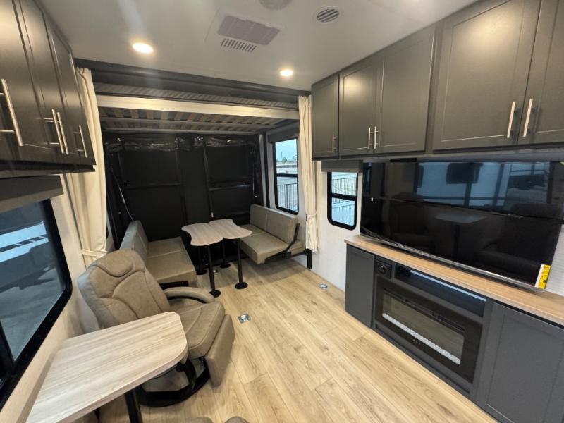 Enjoy flexible living and affordable costs with the Sandstorm fifth wheel and travel trailer toy haulers! The versatile garage areas can be used for both toy storage plus seating and sleeping spaces. Each model includes a ramp door with patio cables, a power tongue jack, and a 40-gallon fuel station to keep your bikes filled and ready for adventure. The residential king bed is sure to bring comfort each day, along with a tankless water heater so everyone can clean up after trail riding. There are a variety of floorplans to choose from, including GX models with added features for those who want to take their excursions up a notch!