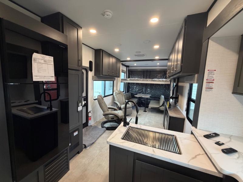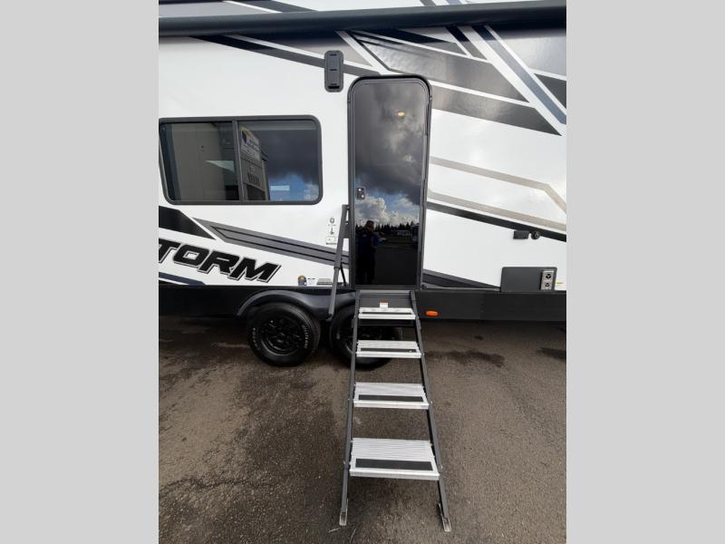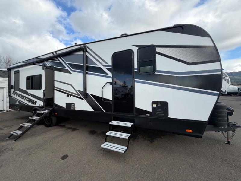 Enjoy flexible living and affordable costs with the Sandstorm fifth wheel and travel trailer toy haulers! The versatile garage areas can be used for both toy storage plus seating and sleeping spaces. Each model includes a ramp door with patio cables, a power tongue jack, and a 40-gallon fuel station to keep your bikes filled and ready for adventure. The residential king bed is sure to bring comfort each day, along with a tankless water heater so everyone can clean up after trail riding. There are a variety of floorplans to choose from, including GX models with added features for those who want to take their excursions up a notch!
