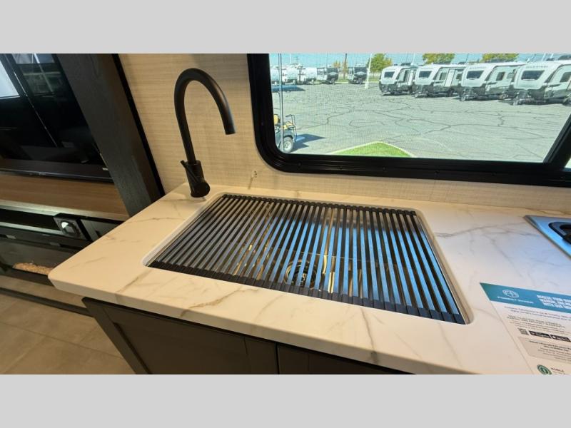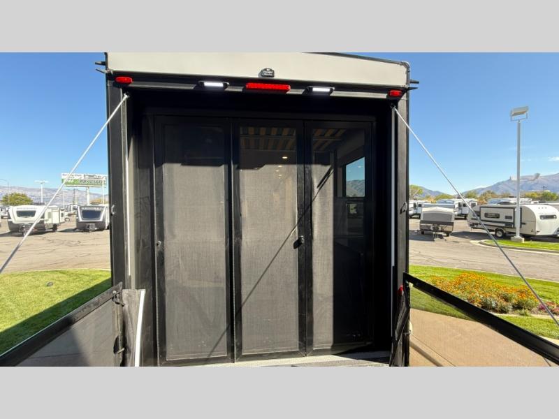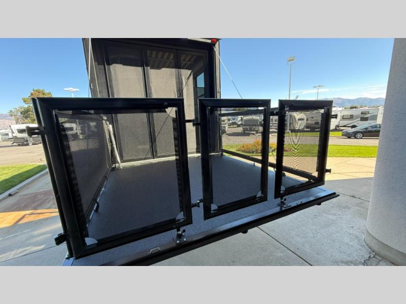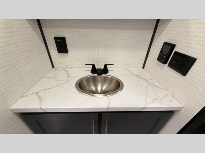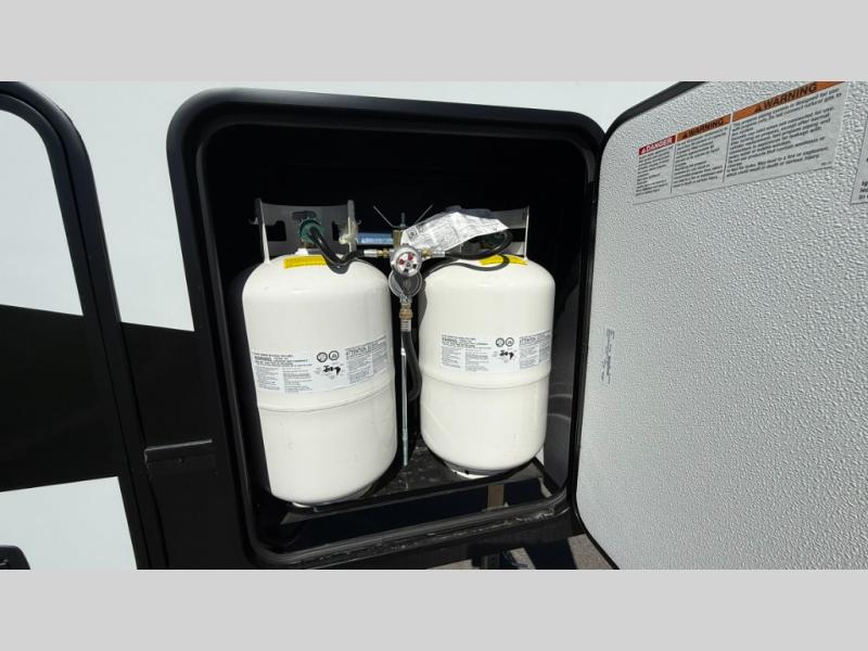 The Sandstorm toy haulers by Forest River let you take your adventures up a notch! There are four different build levels to choose from to best fit your needs, budget, and style. Each travel trailer and fifth wheel include flipped axles with no interior drive on wheel wells, Flip tread solid entry steps, and tie-downs mounted to steel throughout to keep toys secure on the way to the campground. The power tongue jack will make it easier than ever to hitch up and go, and the Lippert ladder prep means you can add this option to easily access the roof. A 40 gallon fuel station comes standard to keep your toys ready to go when you are, and the dual 20 lbs. propane tanks will let you hook up the grill to make dinner for your whole crew. Some of the other convenient features include a spare tire (with carrier on tongue pull) if an unfortunate flat happens, a 335W solar panel, and a 1.5 cu. ft. convection microwave. And don't forget about the available options that will allow you to customize your toy hauler exactly how you want it!