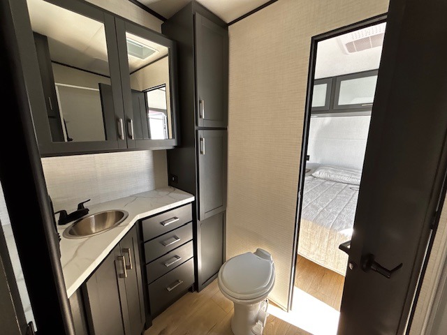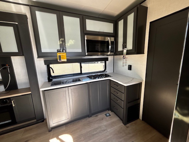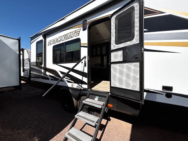 Every Shockwave toy hauler is engineered for the adventurous spirit. With a versatile garage that doubles as a lounge or sleeping area, a fully equipped kitchen, and a bathroom designed for convenience, you’ll have everything you need on the road. Add in generator prep for off-grid living, plus exterior storage for your essentials, and you’re ready for the next big trip.