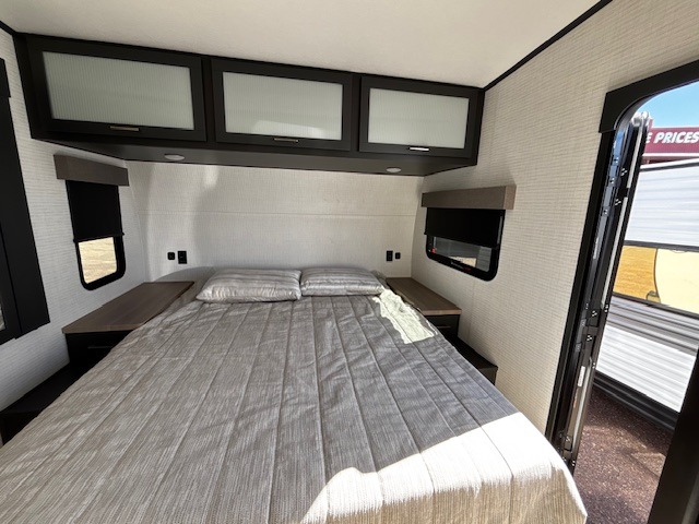 Private Front Bedroom – Featuring a king bed and dresser slide-out for added storage.