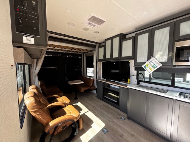 Dual Lounge Chairs – Kick back and relax after a long day on the trails, perfectly positioned across from the entertainment center.