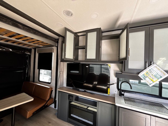 Electric Pass-Thru Dinette & Drop-Down Bed – Enjoy meals and game nights, then convert into extra sleeping for guests.
