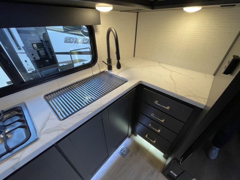 Each Shockwave toy hauler by Forest River is ready for adventure when you are! The versatile garage areas can be used for both toy storage plus seating and sleeping spaces. There is full bath and kitchen amenities to make camping easier than ever, and you'll find ample storage space for food, gear, personal belongings and more. Each fifth wheel and travel trailer also features generator prep if you'd like to further customize your toy hauler!