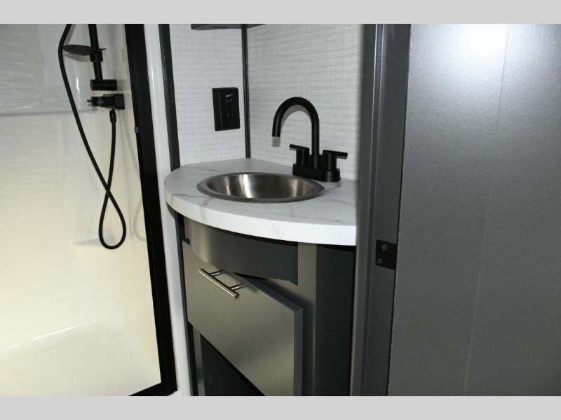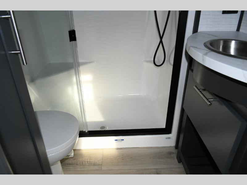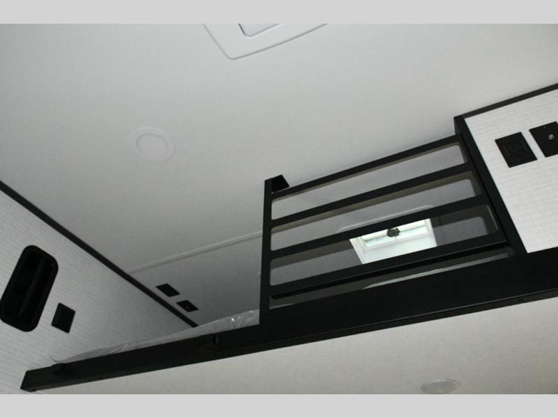 The 14-foot rear garage is ready to carry ATVs, dirt bikes, or any of your favorite ride-on toys. The 3,000 lb. ramp door ensures easy loading and unloading, while the garage doubles as a versatile living area with Sit N Sleep rollover sofas, a removable dinette table, a Sleep N Store bed above, and a loft for extra sleeping space. This setup makes it easy to accommodate family and friends, giving everyone a cozy place to rest after a day of outdoor fun.