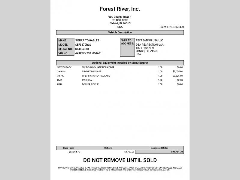 FREIGHT, PREP, DETAIL AND WALK-THROUGH INCLUDED! ALSO, NATIONAL SHIPPING AVAILABLE!