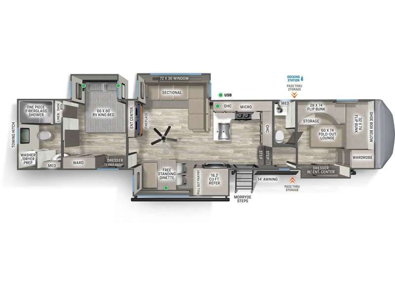 FRONT QUAD BUNK SUITE/ ONE AND A HALF BATH/ KING BED ROOM/ SOLAR SYSTEM / 2 AC !!
