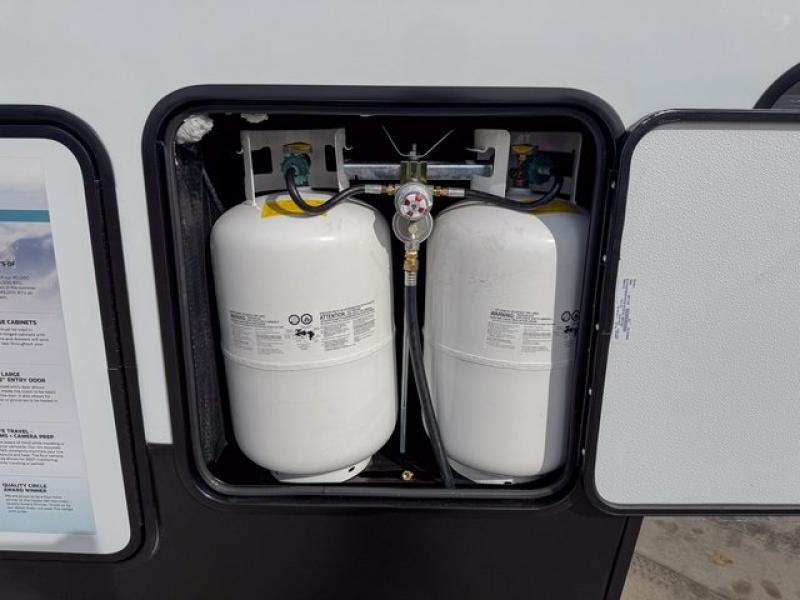 Each one of these Forest River Sierra fifth wheels are equipped with everything you need to make the most of each adventure! The underbelly armor will protect your unit's vitals from road debris and the painted two tone aerodynamic fiberglass front cap has an improved turning radius to make them easier to navigate. With an electric leveling system, you can set your unit up quick and easy then get to having fun faster than ever. The cambered powder coated frame with rust prohibitor construction allows for more duration of the fifth wheel. Each model also comes with a TV antenna with booster, 60,000BTU on demand tankless water heater, Goodyear Radial tires with 7,000 lb. axles, and the list goes on. The interior is just as impressive with Beachside Sundance Congoleum linoleum, recessed residential lighting, a memory foam mattress, and hidden hinged, soft close drawers and cabinets!