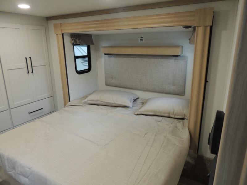 Each one of these Forest River Sierra fifth wheels are equipped with everything you need to make the most of each adventure! The underbelly armor will protect your unit's vitals from road debris and the painted two tone aerodynamic fiberglass front cap has an improved turning radius to make them easier to navigate. With an electric leveling system, you can set your unit up quick and easy then get to having fun faster than ever. The welded aluminum framed, vacuum bonded laminated superstructure will hold up through every adventure and the cambered powder coated frame comes with rust prohibitor to last longer. Each model also includes the Summit Package that comes with a king Wi-Fi extender system and Olympus antenna, a full coach water filter system, Goodyear tires with 7,000 lb. axles, and the list goes on. The interior is just as impressive with rustic wood plank linoleum, recessed residential lighting, a memory foam mattress, and mocha accent crown molding over the kitchen cabinets!