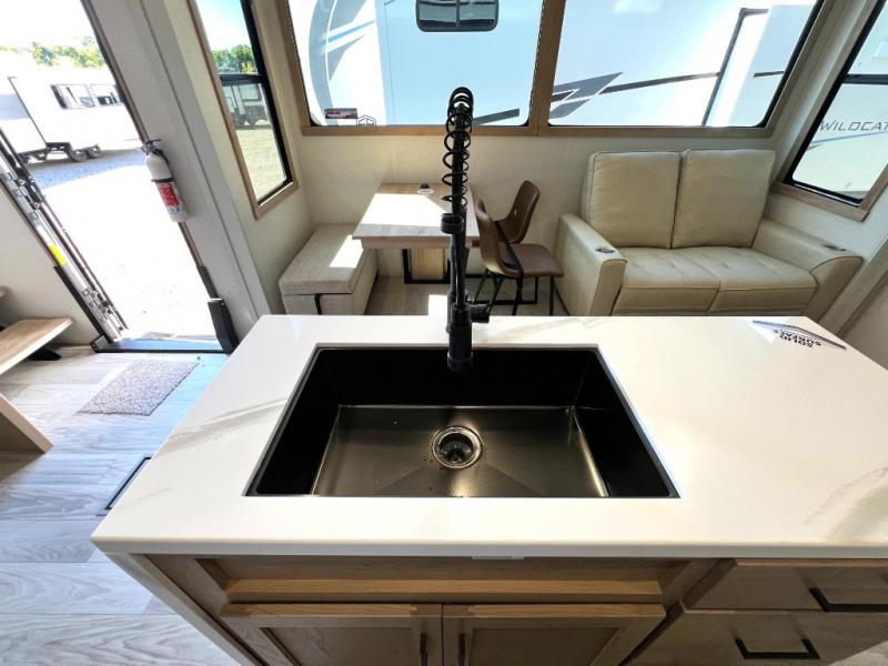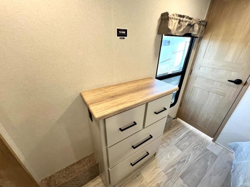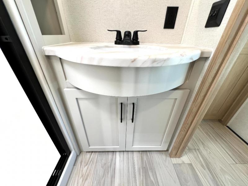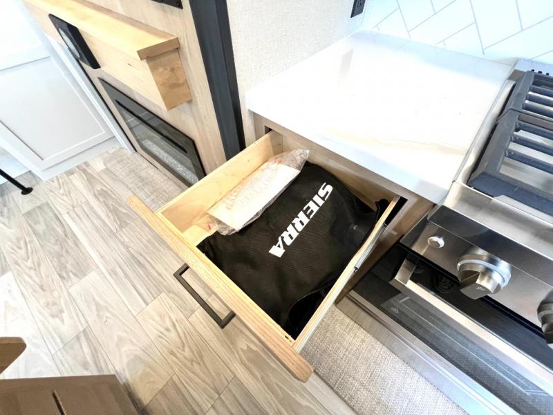 Each one of these Forest River Sierra fifth wheels are equipped with everything you need to make the most of each adventure! The underbelly armor will protect your unit's vitals from road debris and the painted two tone aerodynamic fiberglass front cap has an improved turning radius to make them easier to navigate. With an electric leveling system, you can set your unit up quick and easy then get to having fun faster than ever. The welded aluminum framed, vacuum bonded laminated superstructure will hold up through every adventure and the cambered powder coated frame comes with rust prohibitor to last longer. Each model also includes the Summit Package that comes with a king Wi-Fi extender system and Olympus antenna, a full coach water filter system, Goodyear tires with 7,000 lb. axles, and the list goes on. The interior is just as impressive with rustic wood plank linoleum, recessed residential lighting, a memory foam mattress, and mocha accent crown molding over the kitchen cabinets!
