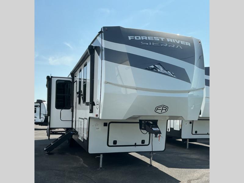 Each one of these Forest River Sierra fifth wheels are equipped with everything you need to make the most of each adventure! The underbelly armor will protect your unit's vitals from road debris and the painted two tone aerodynamic fiberglass front cap has an improved turning radius to make them easier to navigate. With an electric leveling system, you can set your unit up quick and easy then get to having fun faster than ever. The welded aluminum framed, vacuum bonded laminated superstructure will hold up through every adventure and the cambered powder coated frame comes with rust prohibitor to last longer. Each model also includes the Summit Package that comes with a king Wi-Fi extender system and Olympus antenna, a full coach water filter system, Goodyear tires with 7,000 lb. axles, and the list goes on. The interior is just as impressive with rustic wood plank linoleum, recessed residential lighting, a memory foam mattress, and mocha accent crown molding over the kitchen cabinets!