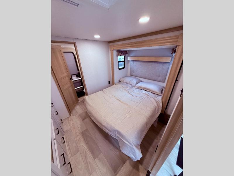 Each one of these Forest River Sierra fifth wheels are equipped with everything you need to make the most of each adventure! The underbelly armor will protect your unit's vitals from road debris and the painted two tone aerodynamic fiberglass front cap has an improved turning radius to make them easier to navigate. With an electric leveling system, you can set your unit up quick and easy then get to having fun faster than ever. The cambered powder coated frame with rust prohibitor construction allows for more duration of the fifth wheel. Each model also comes with a TV antenna with booster, 60,000BTU on demand tankless water heater, Goodyear Radial tires with 7,000 lb. axles, and the list goes on. The interior is just as impressive with Beachside Sundance Congoleum linoleum, recessed residential lighting, a memory foam mattress, and hidden hinged, soft close drawers and cabinets!