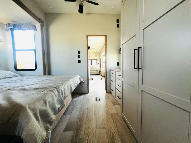 With each Sierra Destination Trailer by Forest River you will enjoy many luxurious features, such as crown molding over the kitchen cabinets, solid surface kitchen countertops, a memory foam mattress, plus so much more. The extra large picture windows throughout let natural light in and provide beautiful outdoor views, and each model includes three or more slides for added interior space. You'll find many exterior conveniences, like the porch light with an interior switch, the rain gutters with extra long drip spouts to prevent black streaking, and an electric awning with LED light strip, plus more! You will stay comfortable year around with dual 15,000 A/C units plus each model is constructed with an Underbelly Armor for better protection and insulation!