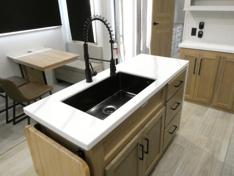 With each Sierra Destination Trailer by Forest River you will enjoy many luxurious features, such as crown molding over the kitchen cabinets, solid surface kitchen countertops, a memory foam mattress, plus so much more. The extra large picture windows throughout let natural light in and provide beautiful outdoor views, and each model includes three or more slides for added interior space. You'll find many exterior conveniences, like the porch light with an interior switch, the rain gutters with extra long drip spouts to prevent black streaking, and an electric awning with LED light strip, plus more! You will stay comfortable year around with dual 15,000 A/C units plus each model is constructed with an Underbelly Armor for better protection and insulation!