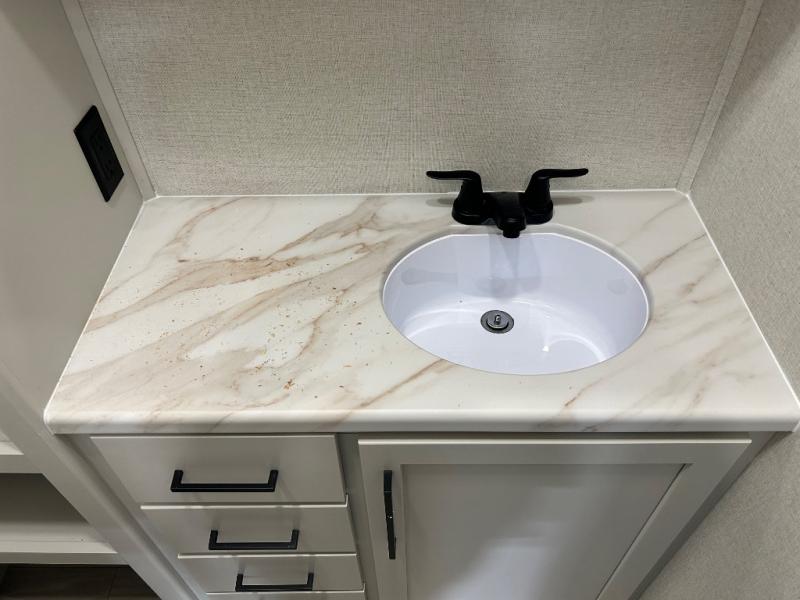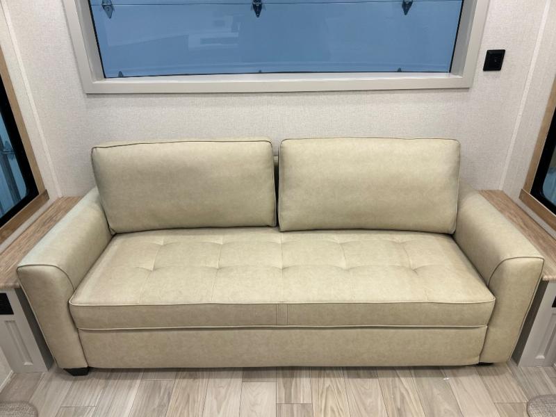 With each Sierra Destination Trailer by Forest River you will enjoy many luxurious features, such as crown molding over the kitchen cabinets, solid surface kitchen countertops, a memory foam mattress, plus so much more. The extra large picture windows throughout let natural light in and provide beautiful outdoor views, and each model includes three or more slides for added interior space. You'll find many exterior conveniences, like the porch light with an interior switch, the rain gutters with extra long drip spouts to prevent black streaking, and an electric awning with LED light strip, plus more! You will stay comfortable year around with dual 15,000 A/C units plus each model is constructed with an Underbelly Armor for better protection and insulation!