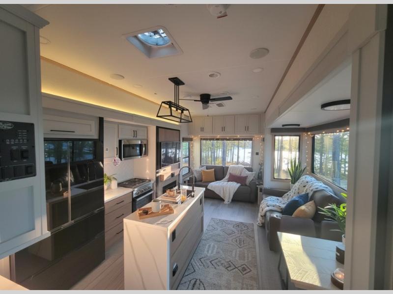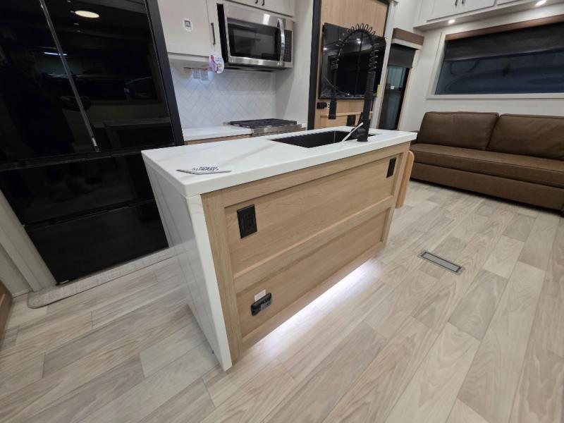 With each Sierra Destination Trailer by Forest River you will enjoy many luxurious features, such as crown molding over the kitchen cabinets, solid surface kitchen countertops, a memory foam mattress, plus so much more. The extra large picture windows throughout let natural light in and provide beautiful outdoor views, and each model includes three or more slides for added interior space. You'll find many exterior conveniences, like the porch light with an interior switch, the rain gutters with extra long drip spouts to prevent black streaking, and an electric awning with LED light strip, plus more! You will stay comfortable year around with dual 15,000 A/C units plus each model is constructed with an Underbelly Armor for better protection and insulation!